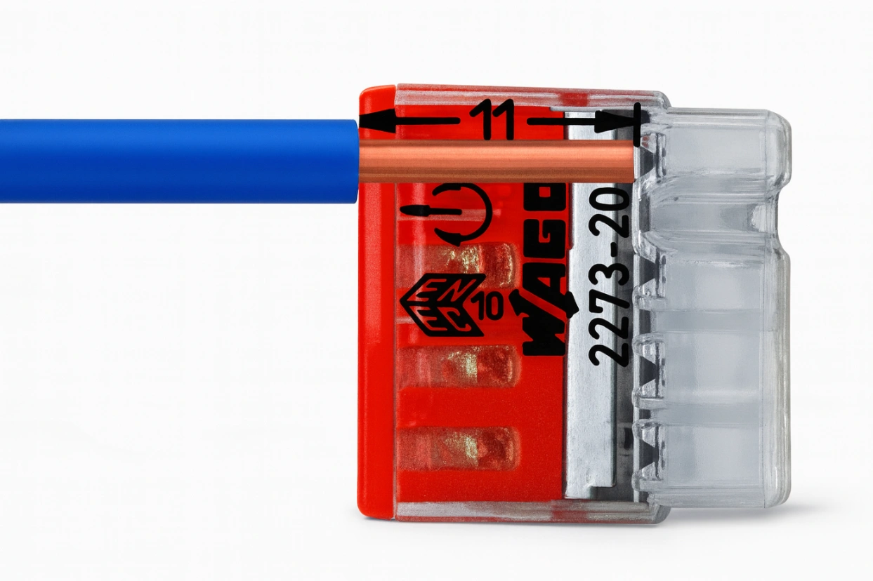 Szybkozłączki serii 2273 przeznaczone są do sztywnych przewodów jednodrutowych o przekroju od 0,5 mm² do 2,5 mm², co zapewnia solidne i trwałe połączenie w każdym punkcie instalacji.