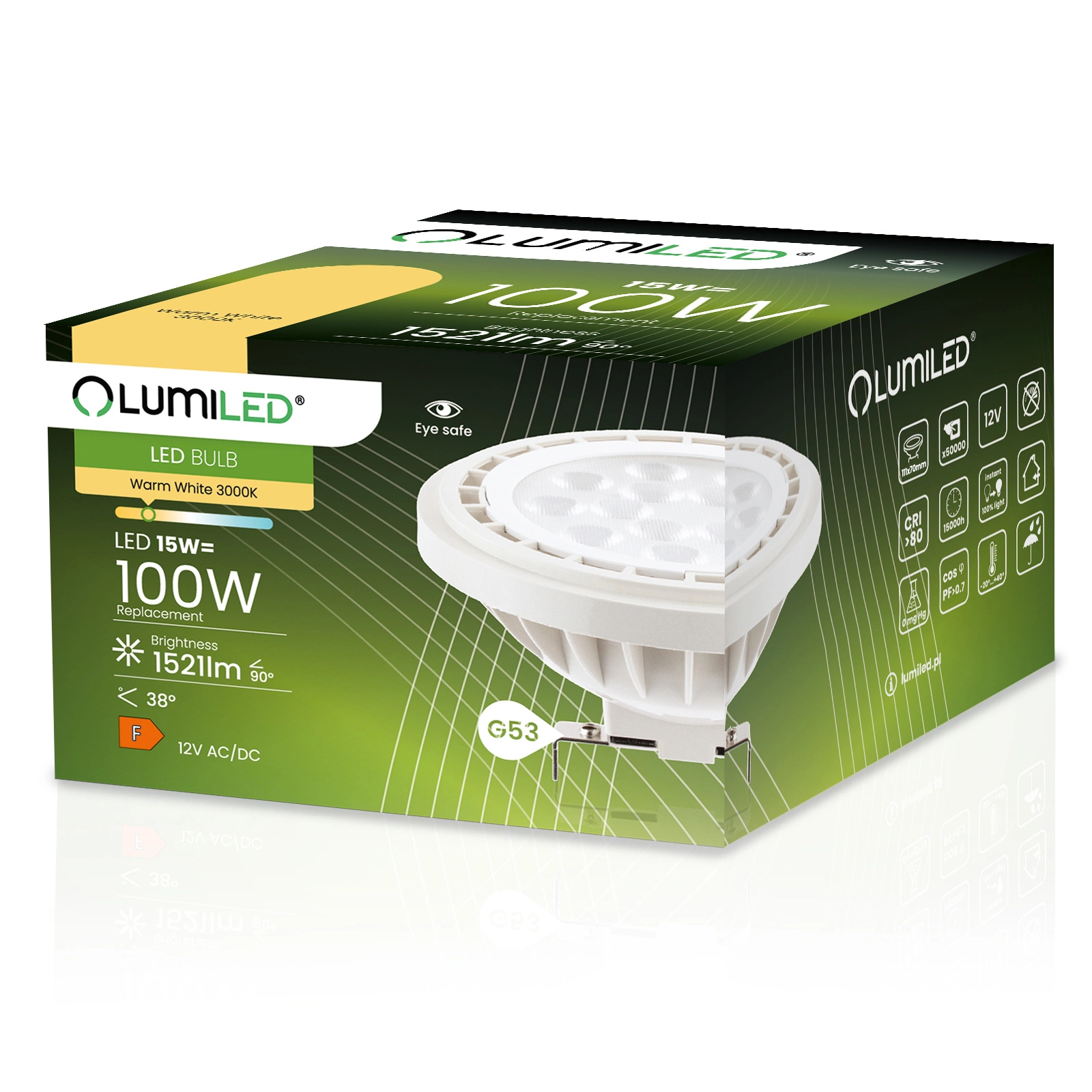 10x Żarówka LED G53 Reflektor AR111 15W = 100W 1521lm 3000K Ciepła 38° 12V LUMILED