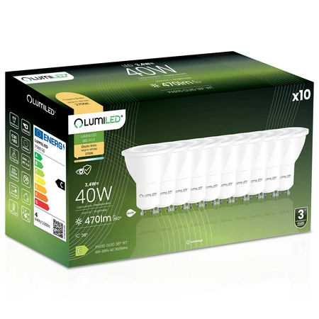 10x Żarówka LED GU10 Reflektor PAR16 3,4W = 40W 470LM 2700K Ciepła 38° LUMILED - czwarta cecha produktu