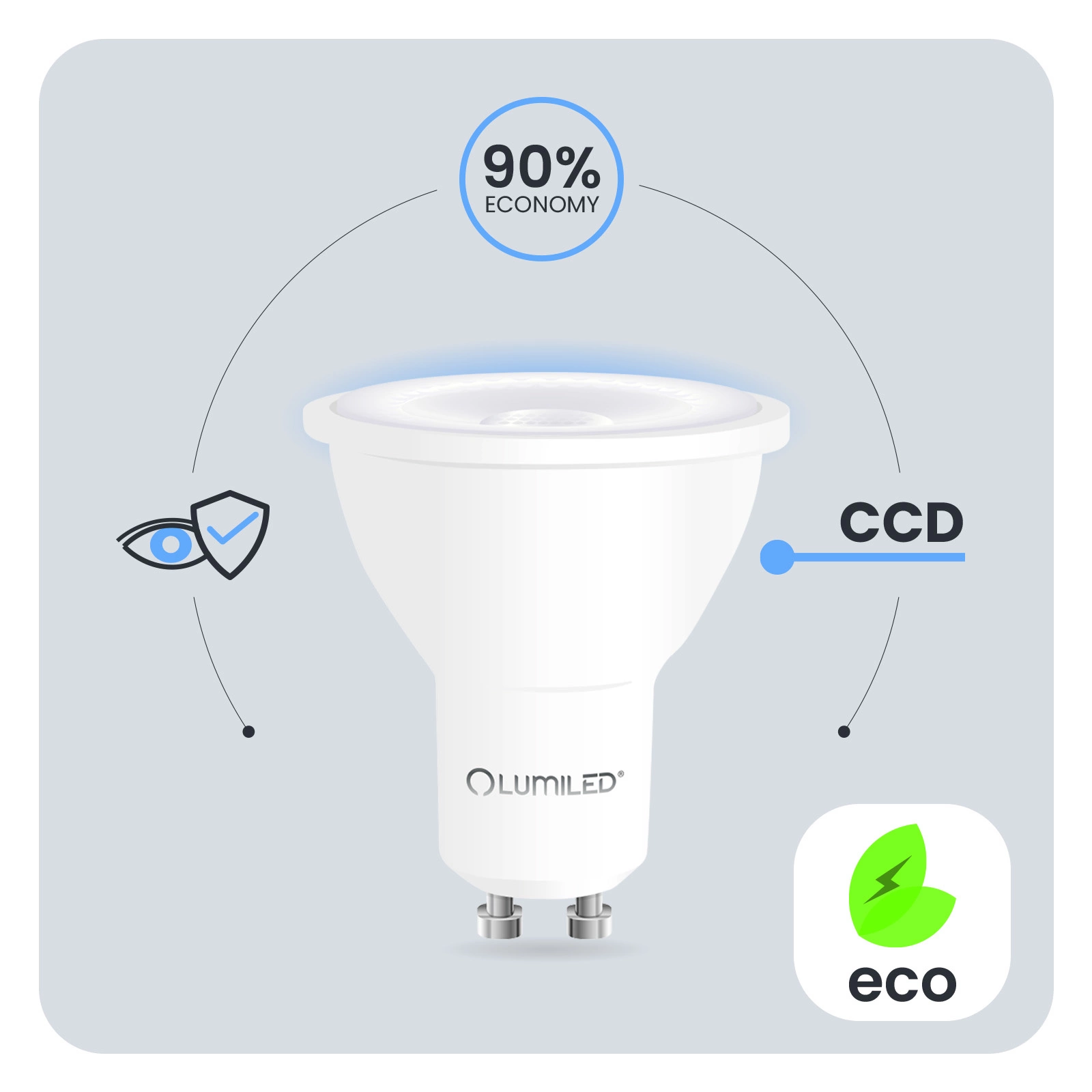 Zastosowana przetwornica CCD w żarówce LED sprawia, że żarówka jest odporna na spadki i wzrosty napięcia w sieci. Światło nie migocze, ani nie drży. Przetwornica CCD sprawia, że żarówka jest bezawaryjna przez długi czas. Żarówki LUMILED zaprojektowane zostały z myślą o jej użytkownikach. Słaba jakość oświetlenia może prowadzić do zmęczenia oczu dlatego nasze Żarówki posiadają opracowanie techniczne Eye Safe zapewnią komfortowe i przyjazne oświetlenie twoim oczom w każdym pomieszczeniu.