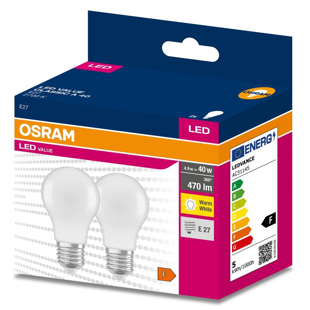 Odkryj jakość oświetlenia na nowo dzięki zestawowi dwóch żarówek LED Osram, które z pewnością wzbogacą każde wnętrze. Żarówki te, z serii VALUE CLASSIC, łączą nowoczesną technologię z estetyką, oferując ciepłe, przytulne światło o temperaturze barwowej 2700K. Dzięki wysokiemu strumieniowi świetlnemu 470lm, stworzysz idealną atmosferę do pracy, odpoczynku czy spotkań z bliskimi.
