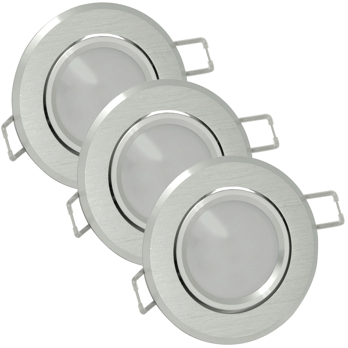 3x Oprawa sufitowa podtynkowa SUN OLAL srebrny szczotkowany alu GOLDLUX (Polux) + LED GU10 3,5W