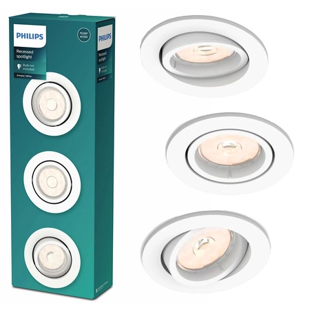 3x Oprawa Podtynkowa Wpuszczana GU10 Biała Enneper Philips