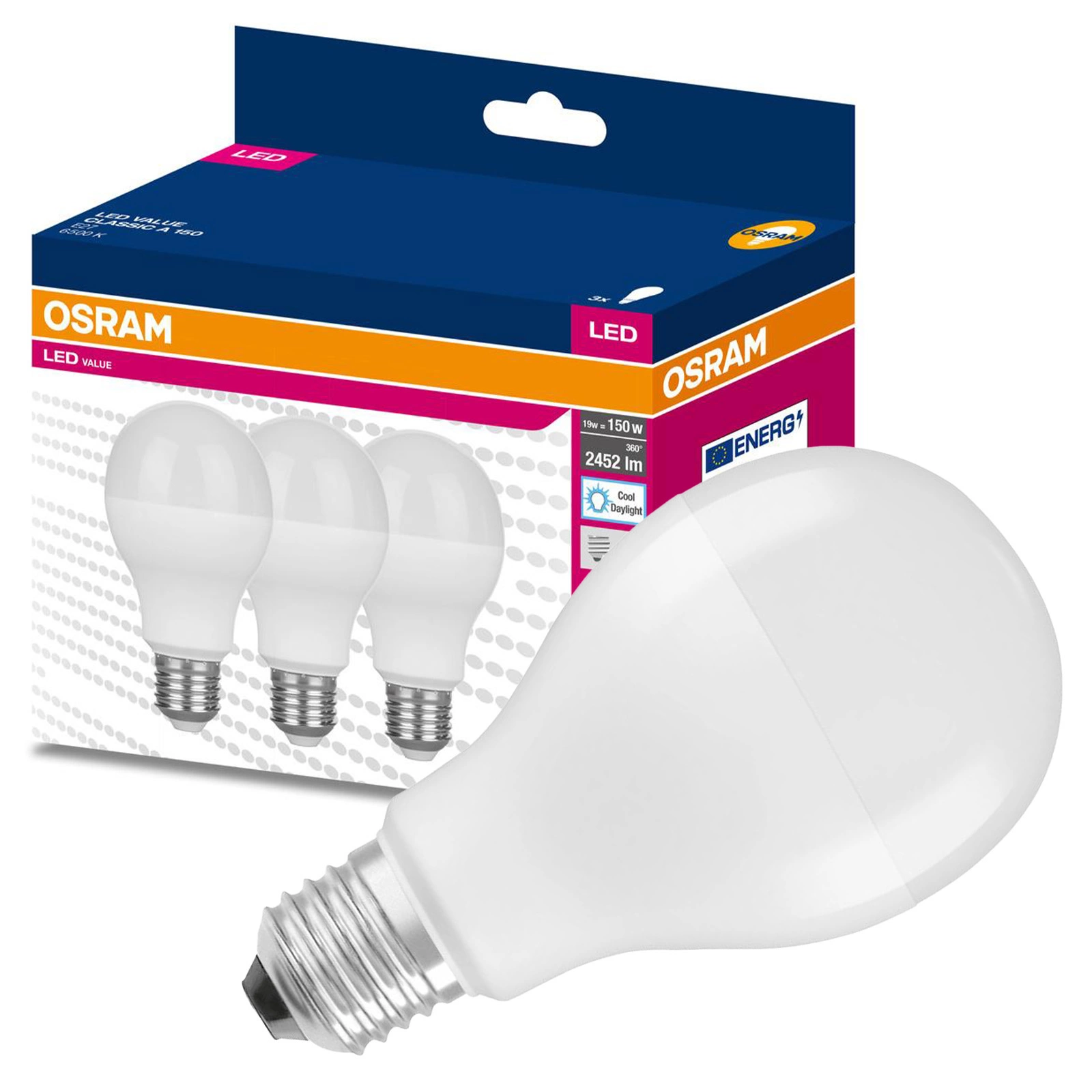 Odkryj doskonałość oświetlenia z żarówką LED Osram z serii VALUE CLASSIC, która łączy w sobie nowoczesną technologię i niezawodność. Dzięki mocy znamionowej 19W, która odpowiada tradycyjnej żarówce o mocy 150W, otrzymujesz imponujący strumień świetlny 2542 lm. Żarówki emanują zimnym białym światłem o temperaturze 6500K, idealnym do naświetlania pomieszczeń, które wymagają skupienia i wydajności, jak biura czy kuchnie. Z szerokim kątem rozsyłu światła 200°, żarówki te doskonale rozjaśnią każdy zakamarek Twojego wnętrza, zapewniając równomierną dystrybucję światła.
