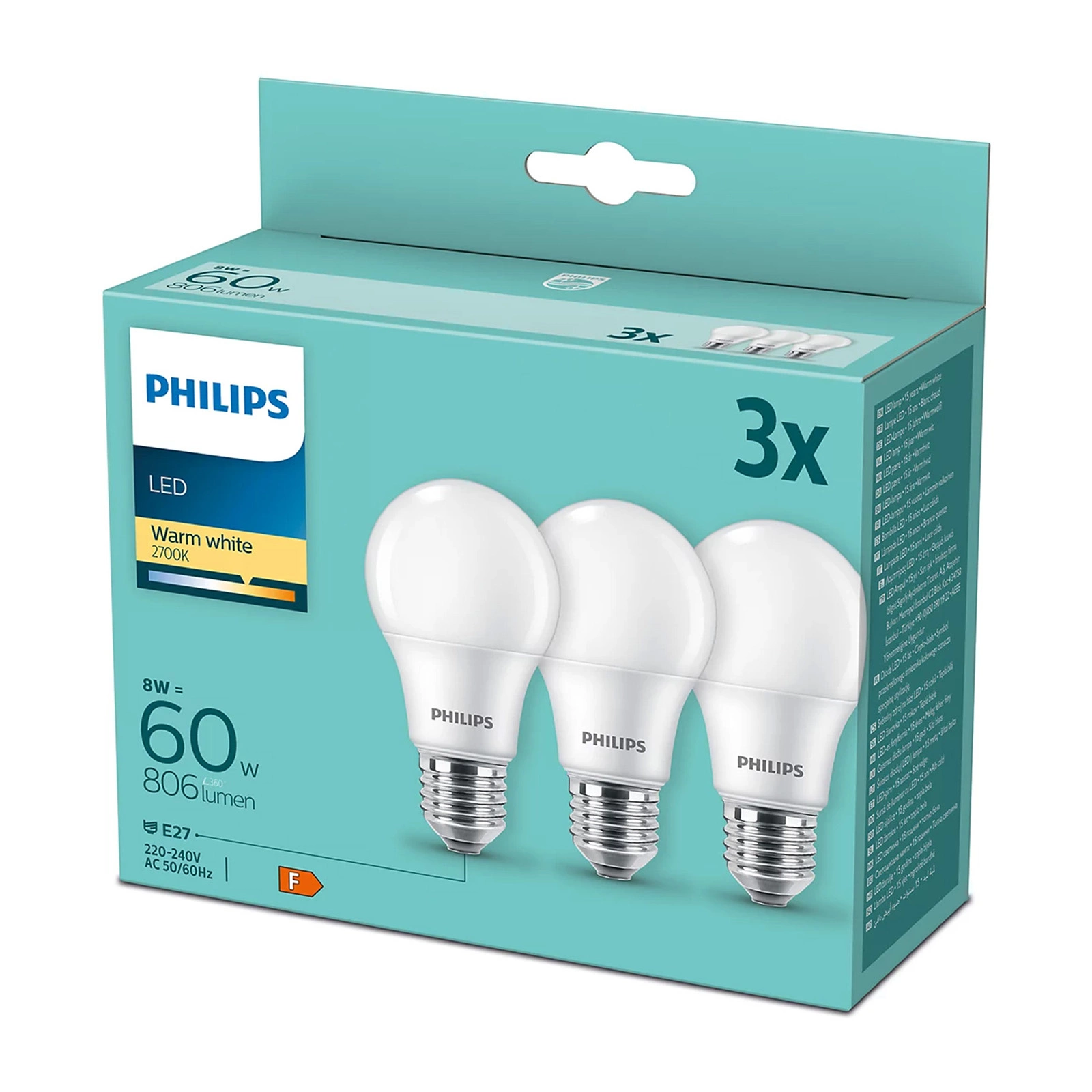 Żarówka LED renomowanej i uznanej w branży oświetleniowej firmy PHILIPS z trzonkiem E27 i mocy 8W i ciepłej barwie światła. Żarówka doskonale sprawdzi się w każdym gospodarstwie domowym, sklepie, hotelu czy restauracji jako klasyczne oświetlenie i może być montowana we wszystkich tradycyjnych oprawach, które wyposażone są w trzonek E27.