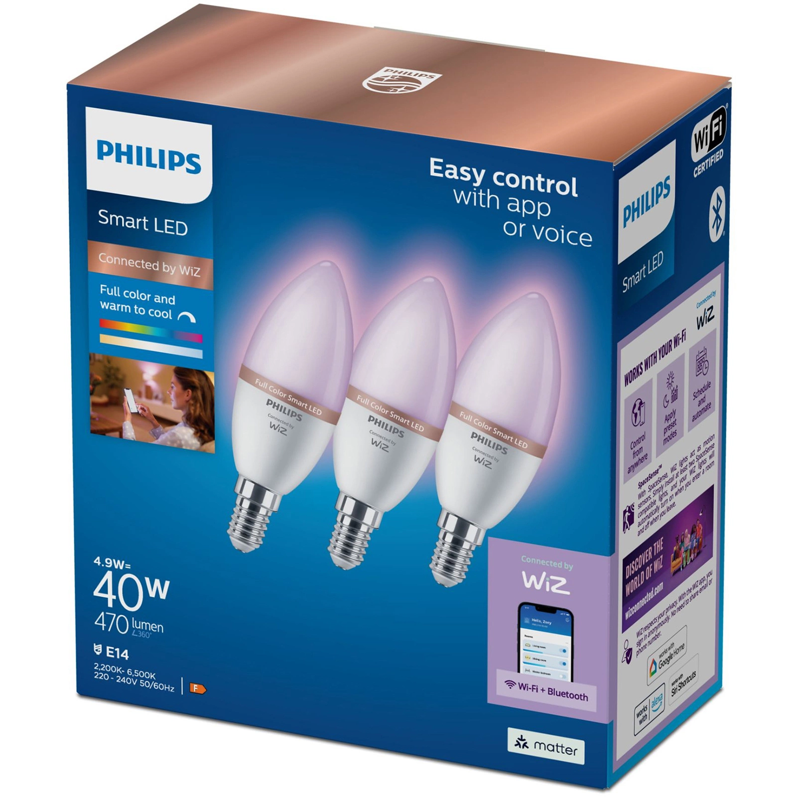 3x Żarówka LED E14 Świeczka C37 4.9W = 40W 470lm 2200-6500K RGB + TW Inteligentna SMART WiFi Bluetooth Aplikacja WiZ Philips