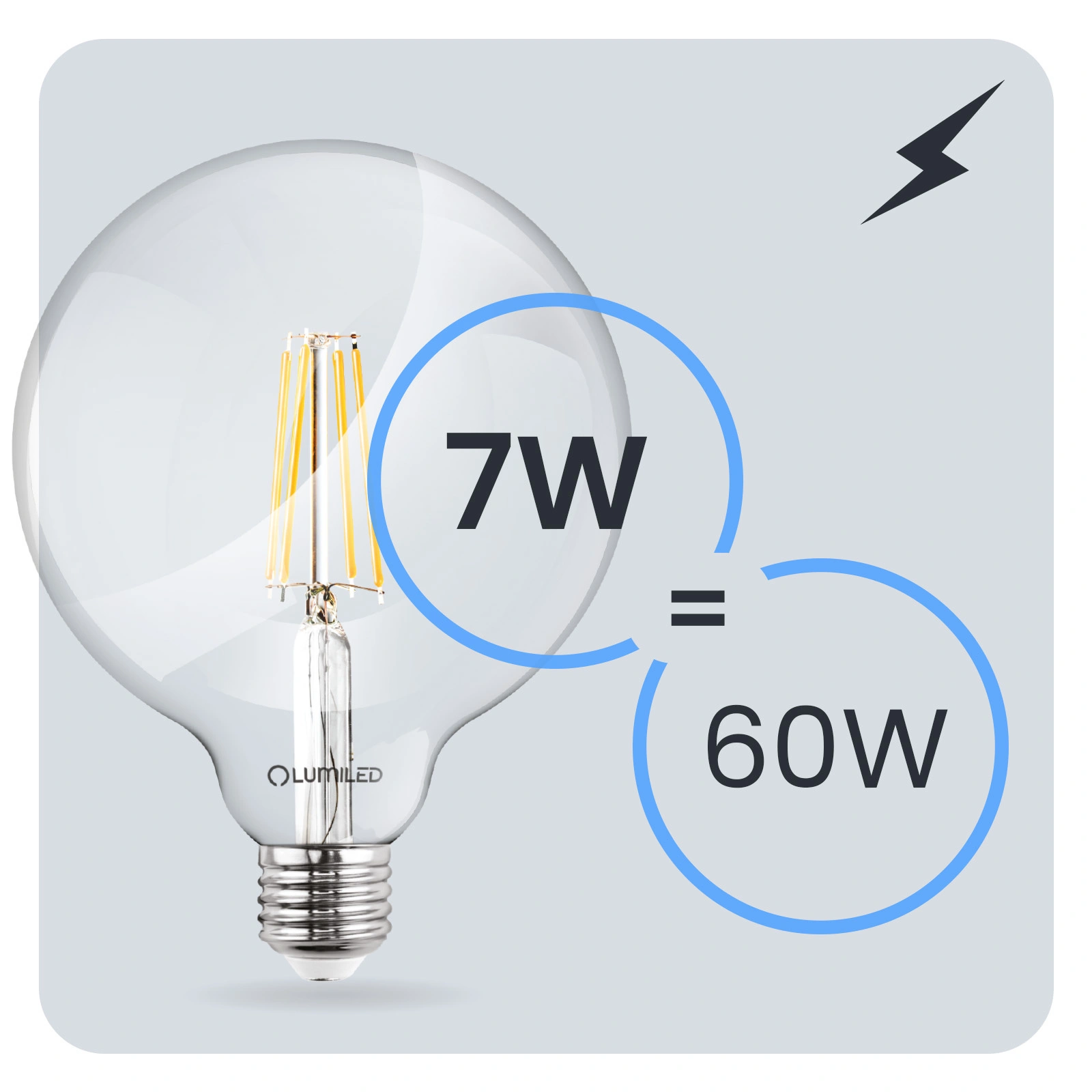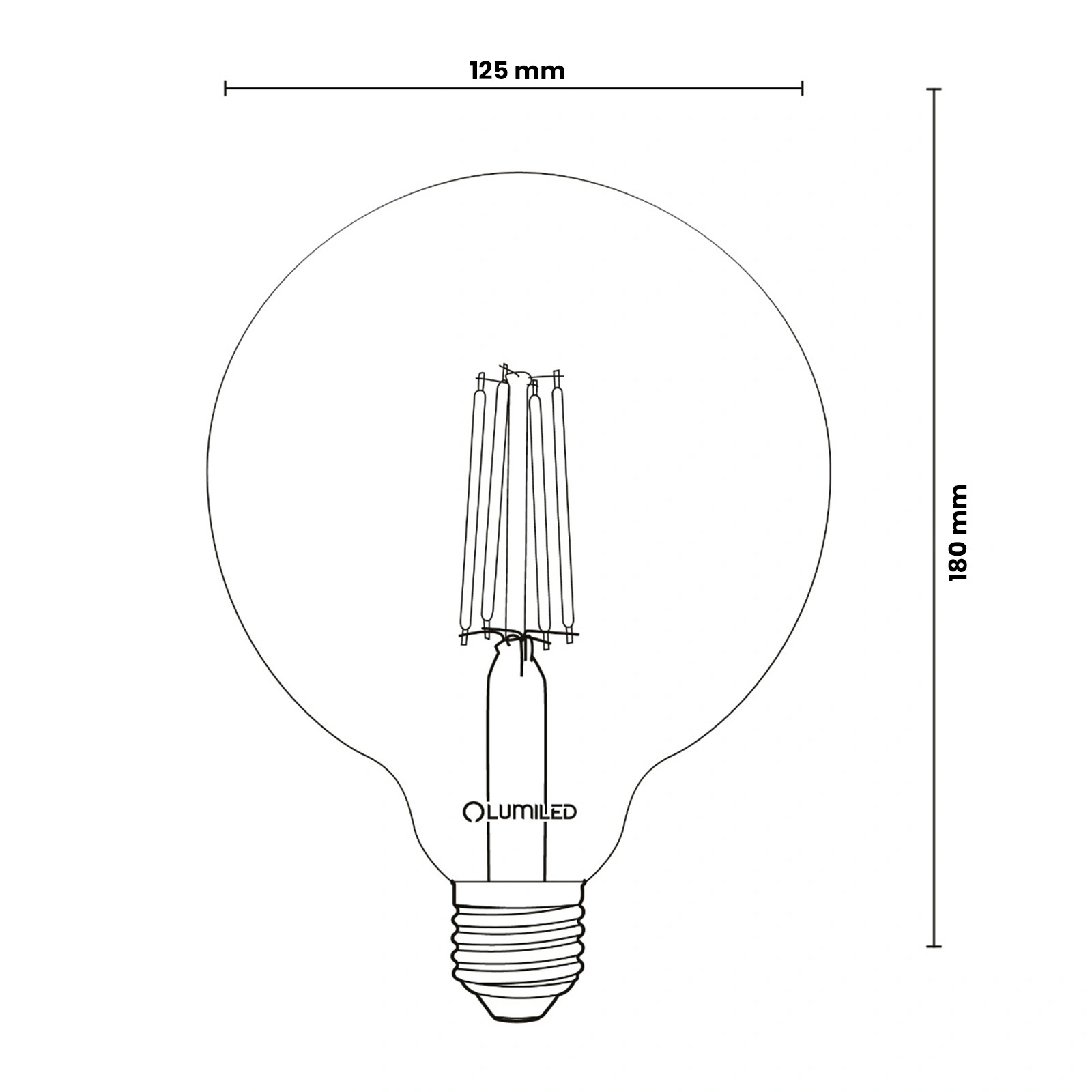 3x Żarówka LED E27 Kula G125 7W = 60W 806lm 3000K Ciepła 360° FILAMENT LUMILED - pierwsza cecha produktu