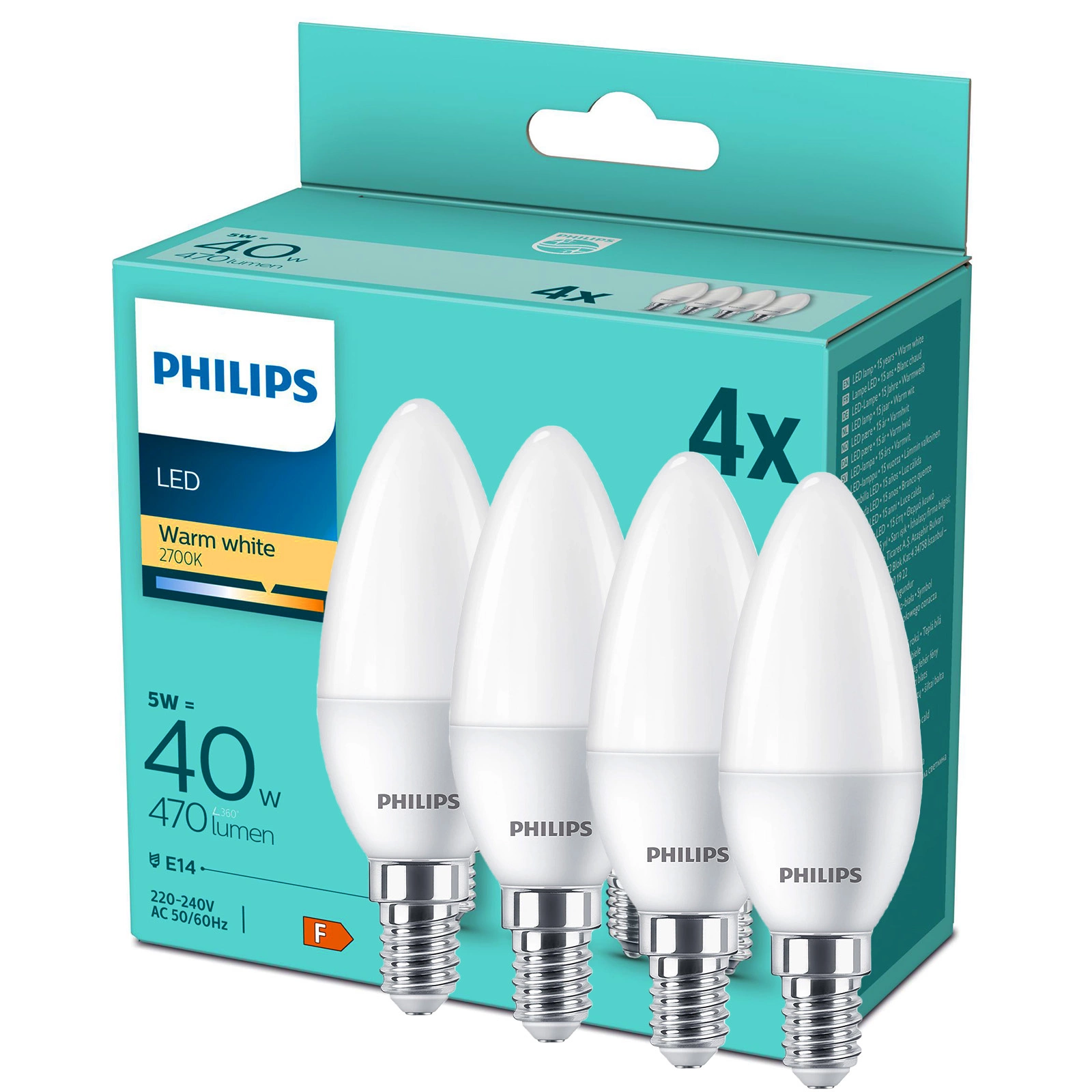 Żarówka LED renomowanej i uznanej w branży oświetleniowej firmy PHILIPS z trzonkiem E14 i mocy 4,9W i ciepłej barwie światła. Żarówka doskonale sprawdzi się w każdym gospodarstwie domowym, sklepie, hotelu czy restauracji jako klasyczne oświetlenie i może być montowana we wszystkich tradycyjnych oprawach, które wyposażone są w trzonek E14.