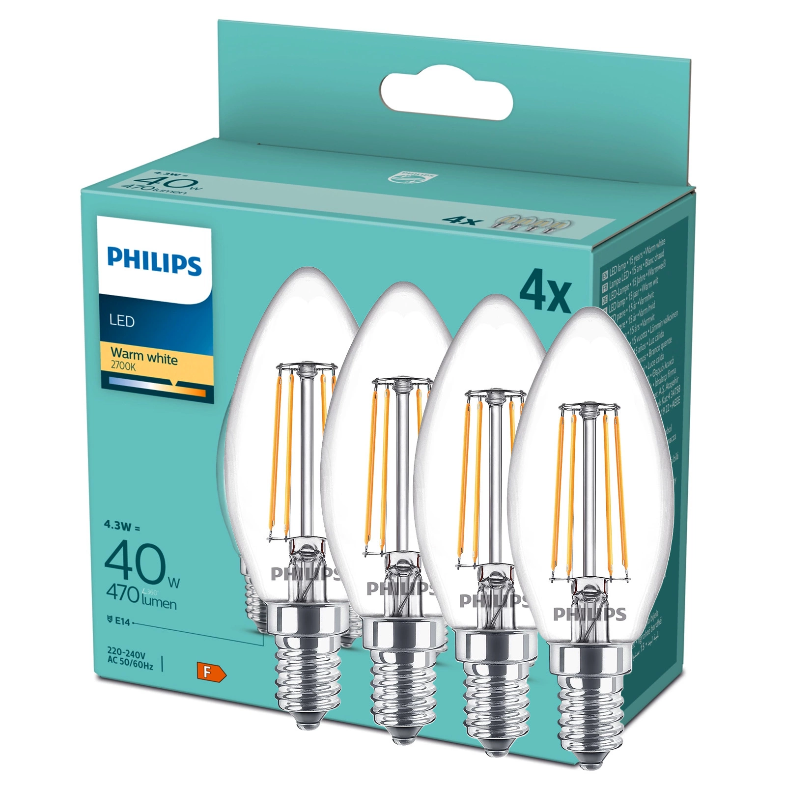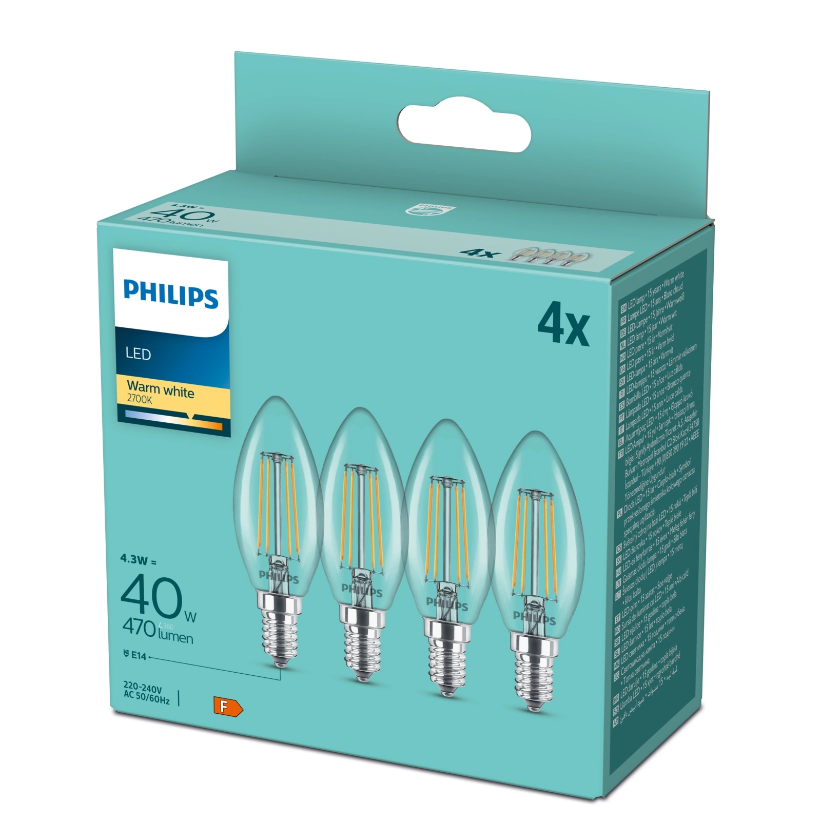 4x Żarówka LED E14 Świeczka B35 4.3W = 40W 470lm 2700K Ciepła 300° FILAMENT Essential Philips