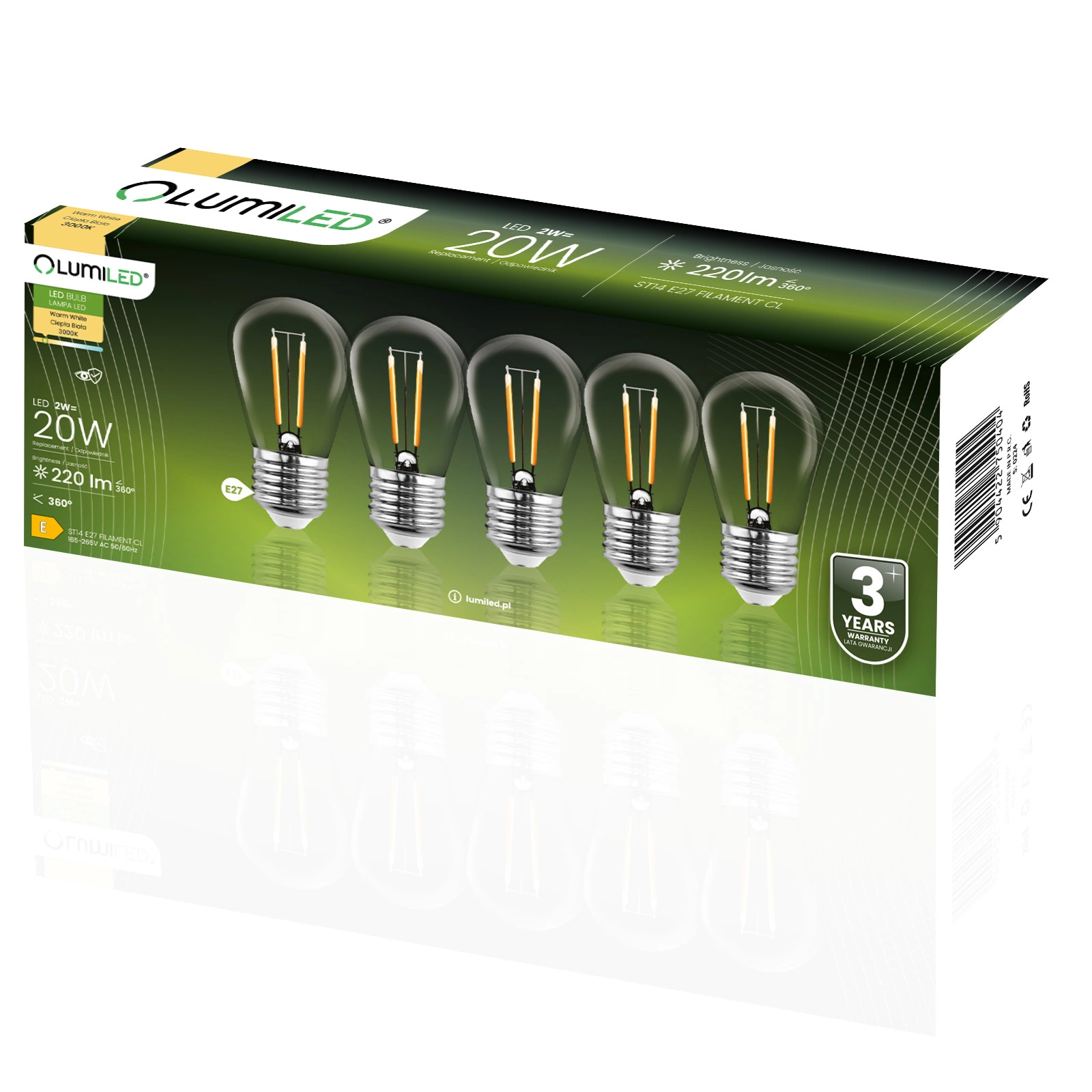 Żarówka LED E27 Edison ST14 2W = 20W 220lm 3000K Ciepła 360° FILAMENT LUMILED
