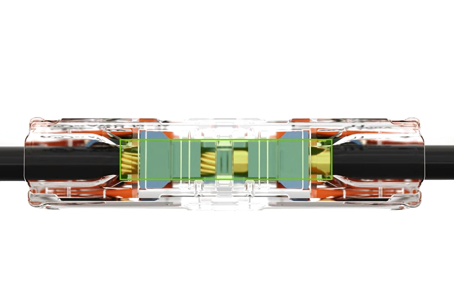 Przeźroczysta obudowa złączki pozwala na sprawdzenie poprawności wprowadzenia przewodu.