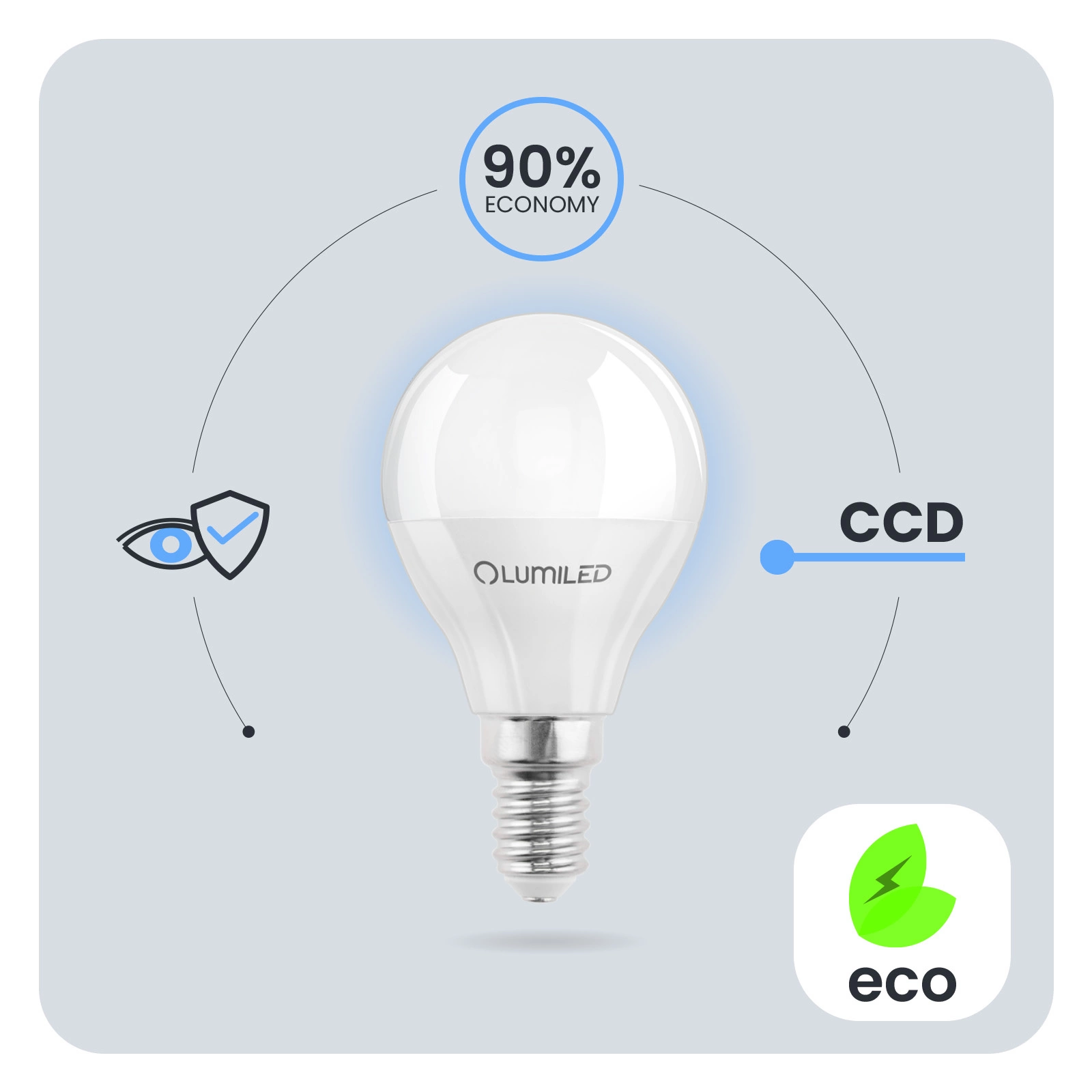 Zastosowana przetwornica CCD w żarówce LED sprawia, że żarówka jest odporna na spadki i wzrosty napięcia w sieci. Światło nie migocze, ani nie drży. Przetwornica CCD sprawia, że żarówka jest bezawaryjna przez długi czas. Żarówki LUMILED zaprojektowane zostały z myślą o jej użytkownikach. Słaba jakość oświetlenia może prowadzić do zmęczenia oczu dlatego nasze Żarówki posiadają opracowanie techniczne Eye Safe zapewnią komfortowe i przyjazne oświetlenie twoim oczom w każdym pomieszczeniu.