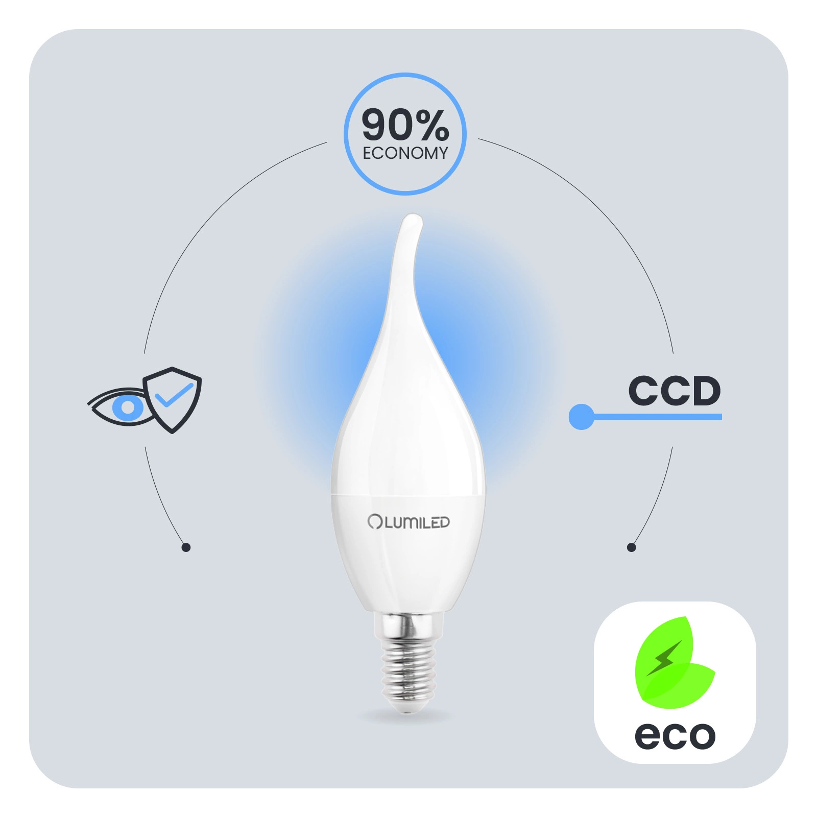 Zastosowana przetwornica CCD w żarówce LED sprawia, że żarówka jest odporna na spadki i wzrosty napięcia w sieci. Światło nie migocze, ani nie drży. Przetwornica CCD sprawia, że żarówka jest bezawaryjna przez długi czas. Żarówki LUMILED zaprojektowane zostały z myślą o jej użytkownikach. Słaba jakość oświetlenia może prowadzić do zmęczenia oczu dlatego nasze Żarówki posiadają opracowanie techniczne Eye Safe zapewnią komfortowe i przyjazne oświetlenie twoim oczom w każdym pomieszczeniu.