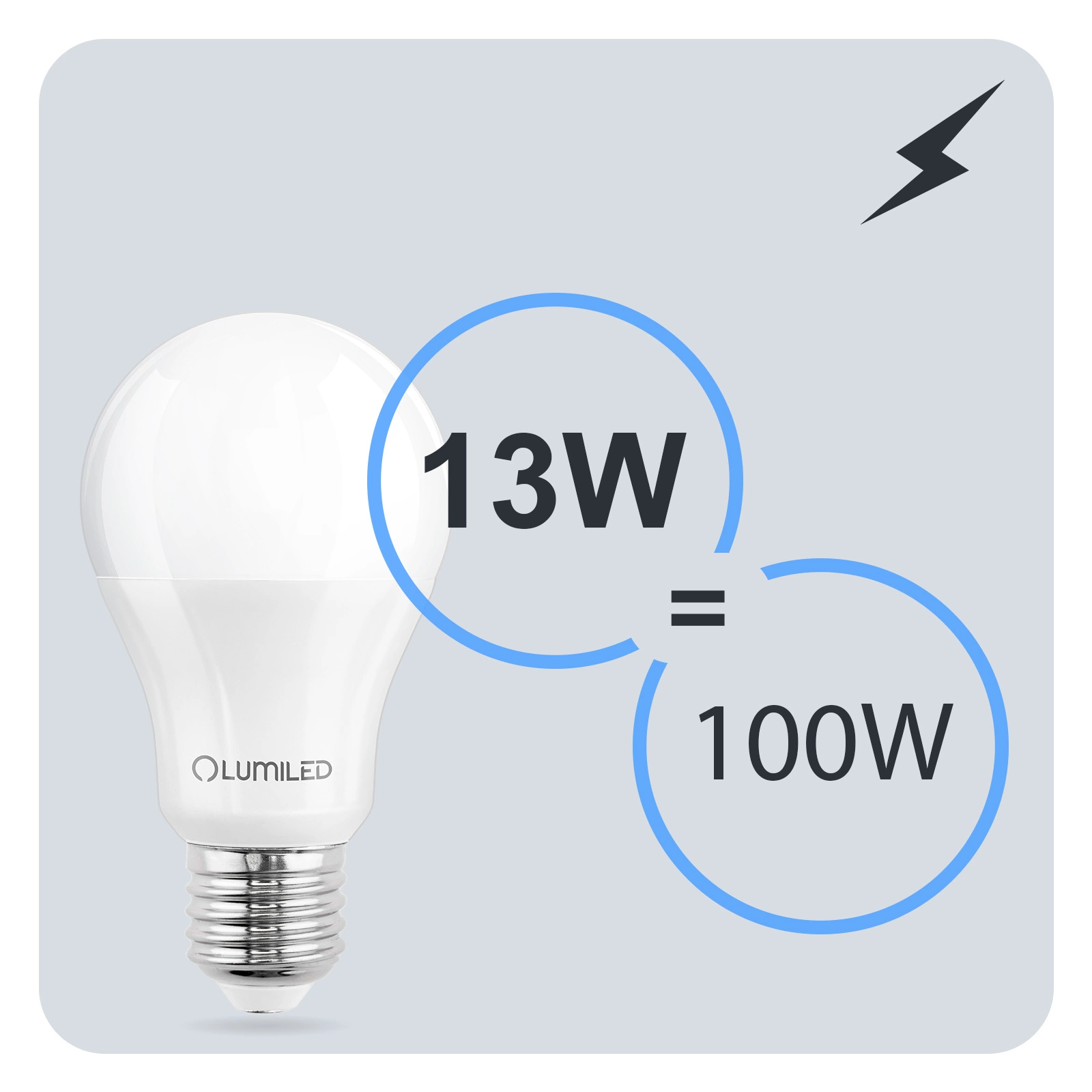 - Tylko 13W poboru mocy – mocne światło porównywalne z tradycyjną 100W, przy znacznie niższym zużyciu energii i realnych oszczędnościach na co dzień.