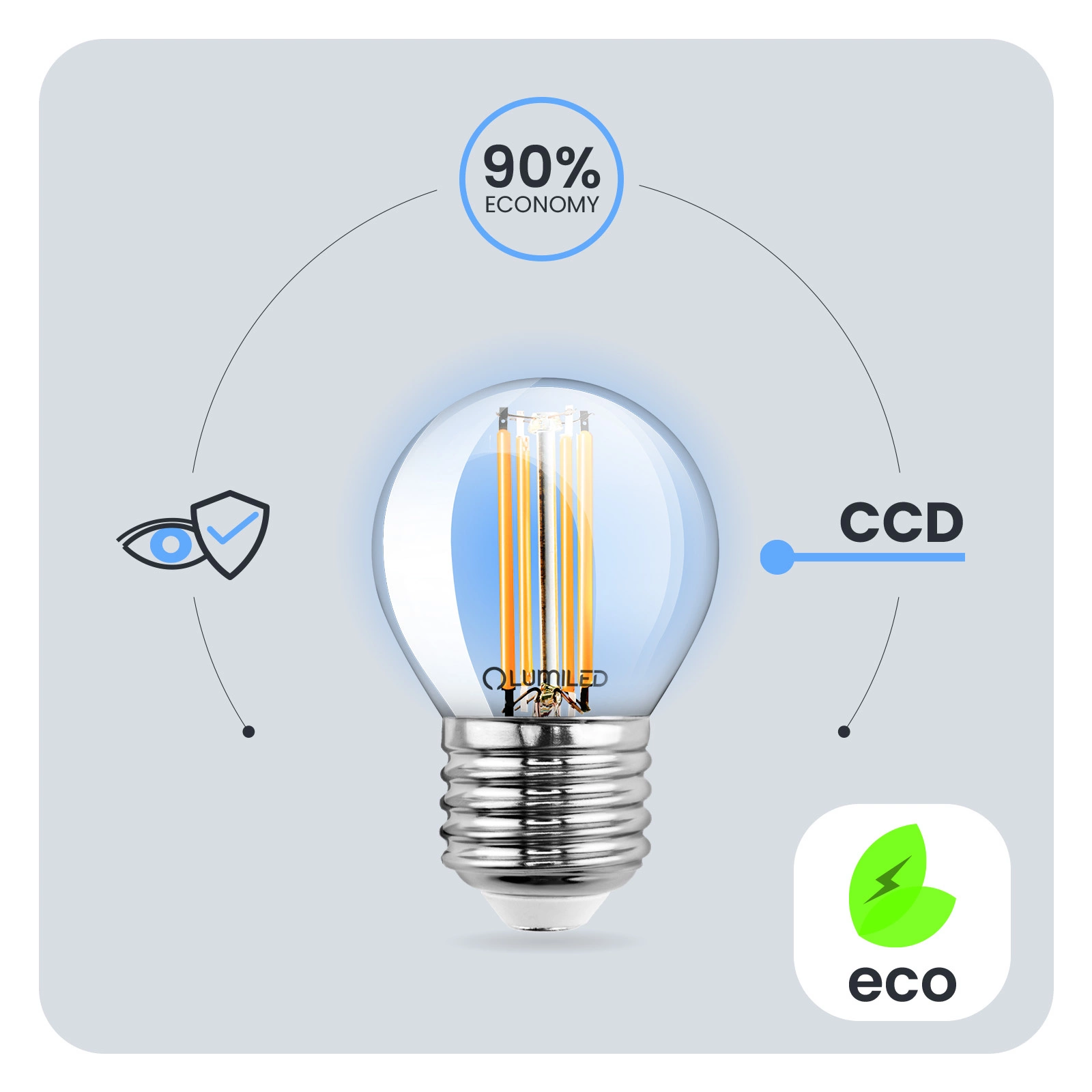 Zastosowana przetwornica CCD w żarówce LED sprawia, że żarówka jest odporna na spadki i wzrosty napięcia w sieci. Światło nie migocze, ani nie drży. Przetwornica CCD sprawia, że żarówka jest bezawaryjna przez długi czas. Żarówki LUMILED zaprojektowane zostały z myślą o jej użytkownikach. Słaba jakość oświetlenia może prowadzić do zmęczenia oczu dlatego nasze Żarówki posiadają opracowanie techniczne Eye Safe zapewnią komfortowe i przyjazne oświetlenie twoim oczom w każdym pomieszczeniu.