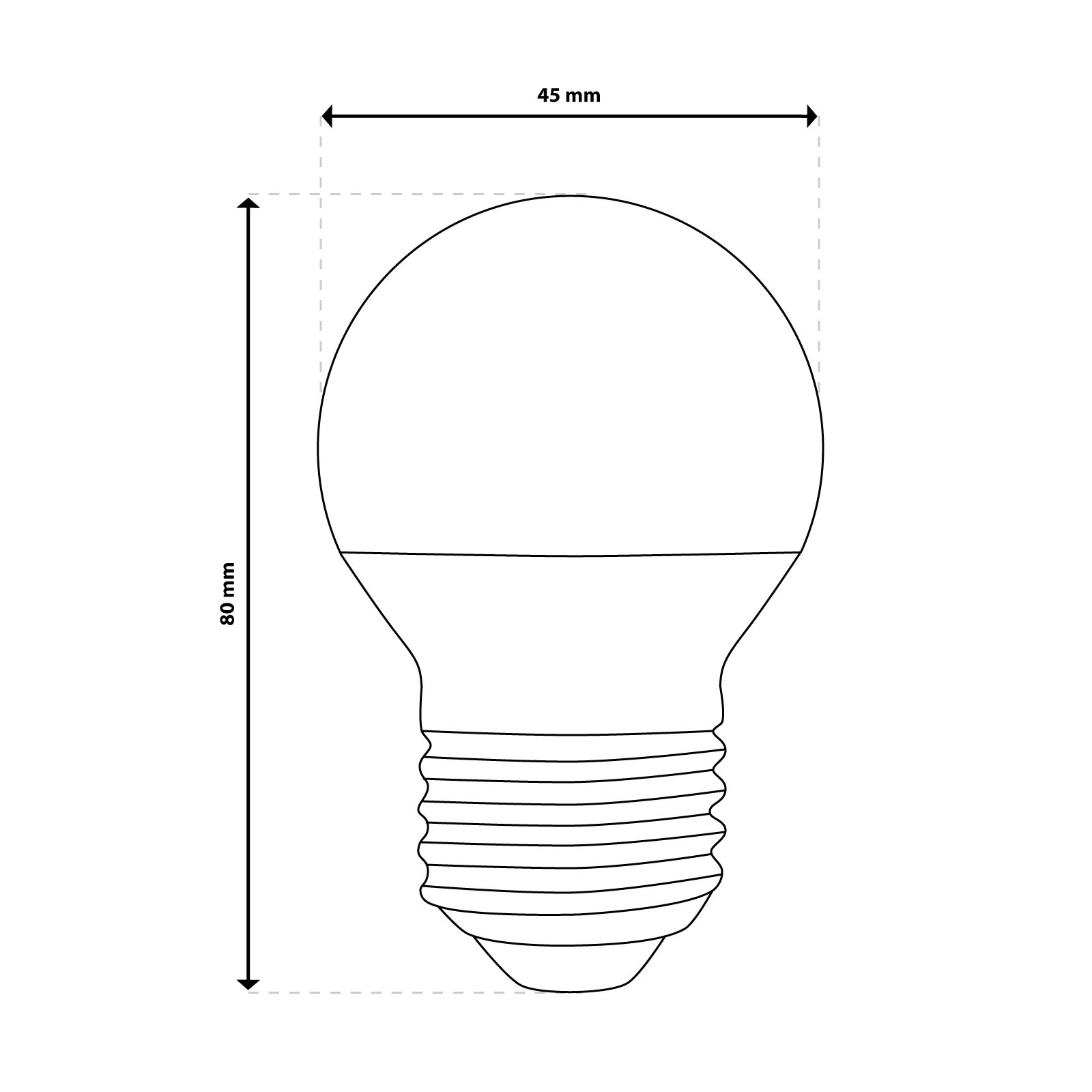 • Kompaktowy rozmiar żarówki P45 z gwintem E27 – bezproblemowo dopasujesz ją do większości lamp i opraw, nawet w trudno dostępnych miejscach.