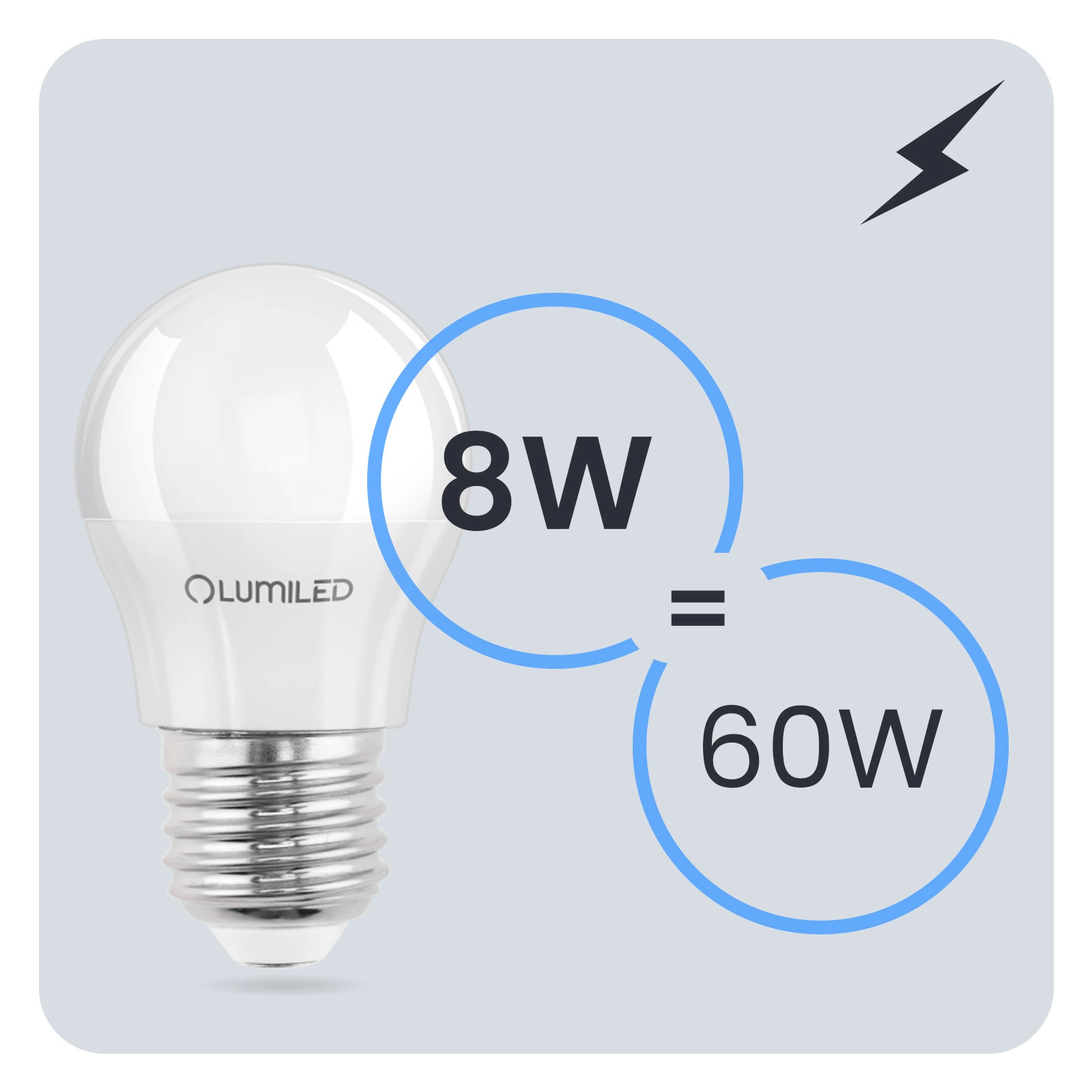 6x Żarówka LED E27 Kulka P45 8W = 60W 880lm 4000K Neutralna 180° LUMILED