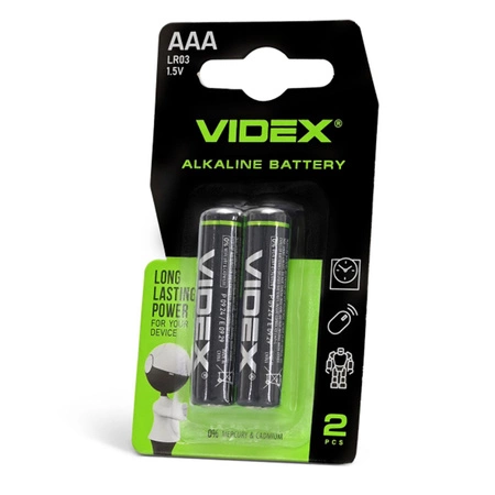 Odkryj niezawodną moc alkalicznych baterii VIDEX, które stanowią idealne źródło zasilania dla Twoich urządzeń. Zestaw dwóch baterii AAA 1.5V zapewnia wydajność i trwałość, dzięki czemu nie musisz obawiać się o szybkie wyczerpanie energii. Doskonałe do zabawek, pilotów, latarki i wielu innych codziennych urządzeń, baterie te gwarantują, że Twoje sprzęty będą zawsze gotowe do działania.