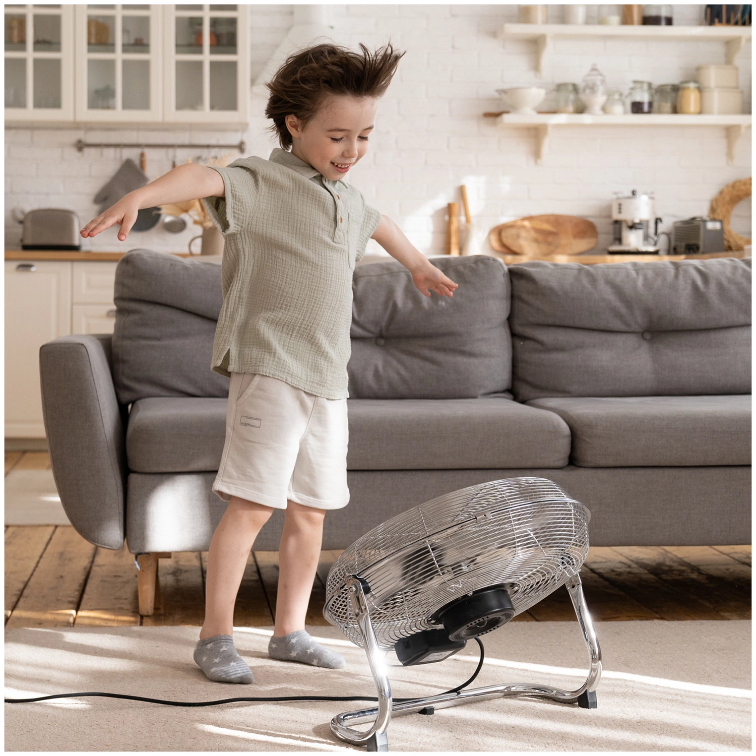 Cyrkulator powietrza znanej i renomowanej na rynku oświetleniowym marki KOBI w kolorze srebrnym o mocy 100W idealnie sprawdzi się w upalne dni, zapewniając ochłodzenie.