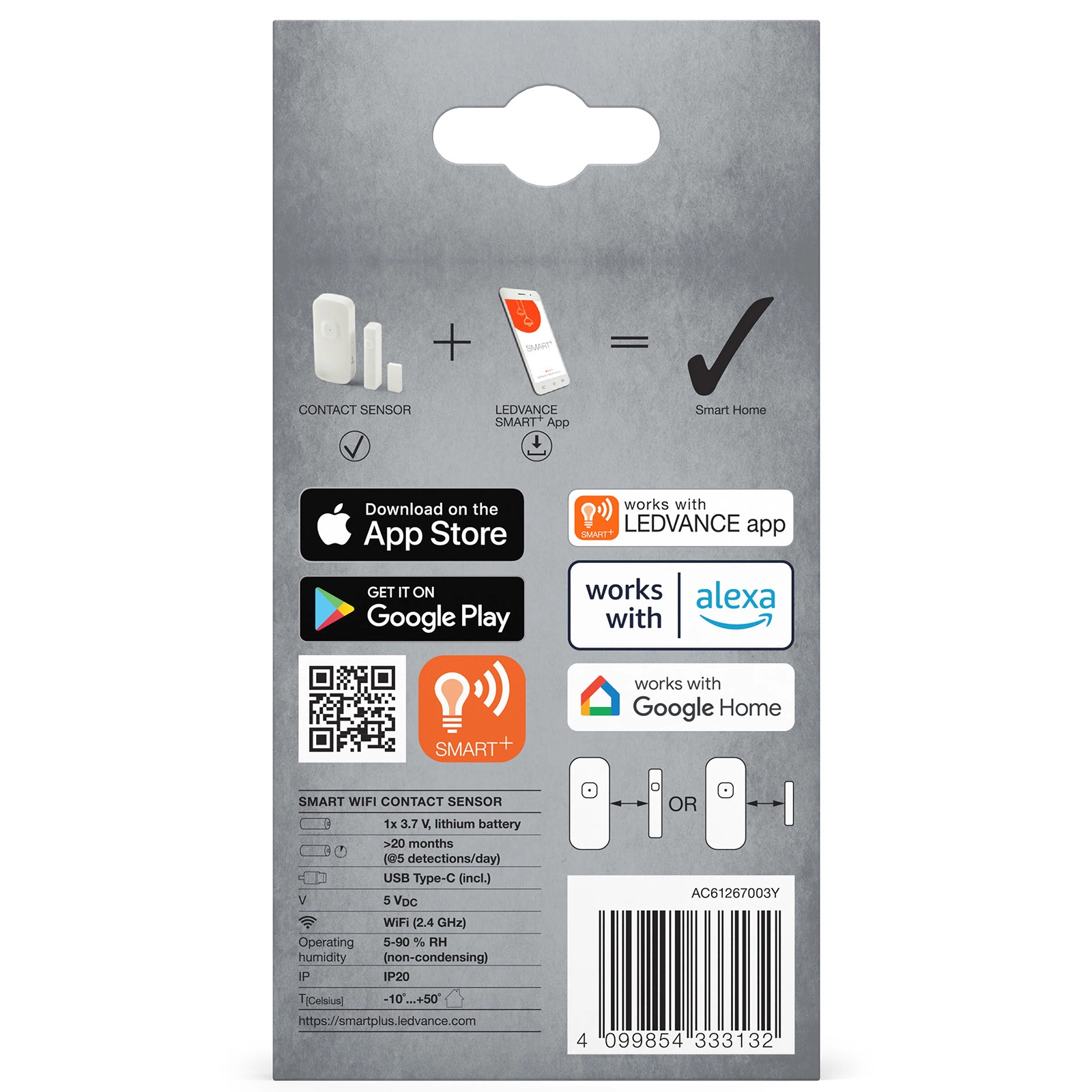 LEDVANCE SMART+ WiFi Contact Sensor to inteligentny czujnik, który monitoruje status otwarcia i zamknięcia drzwi oraz okien, zwiększając bezpieczeństwo domu. Łączy się bezprzewodowo z siecią WiFi, umożliwiając integrację z systemem smart home i sterowanie innymi urządzeniami poprzez aplikację LEDVANCE SMART+. Dzięki funkcji powiadomień użytkownik może na bieżąco otrzymywać alerty na smartfona w przypadku otwarcia zabezpieczonego punktu. Czujnik jest łatwy w montażu dzięki taśmie samoprzylepnej i elastycznym opcjom instalacji. Idealne rozwiązanie dla osób, które chcą zwiększyć kontrolę nad dostępem do swojego domu.