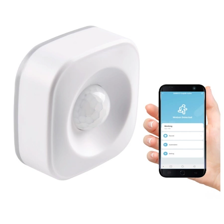 Tym, co wyróżnia ten czujnik to niezwykle prosty i nowoczesny sposób wykrywania ruchu przy pomocy aplikacji TUYAsmart. Aplikację można pobrać na platformę Android w sklepie Google Play i Apple iOS w sklepie App Store. Produkty z serii WIFI SMART automatycznie nawiązują połączenie z siecią bezprzewodową. Poprzez aplikację TUYA możemy sterować wieloma funkcjami: barwą światła, ilością światła (ściemnianie) i zmianą koloru w przypadku produktów RGB. Możemy także zaprogramować automatyczne włączanie i wyłączanie.