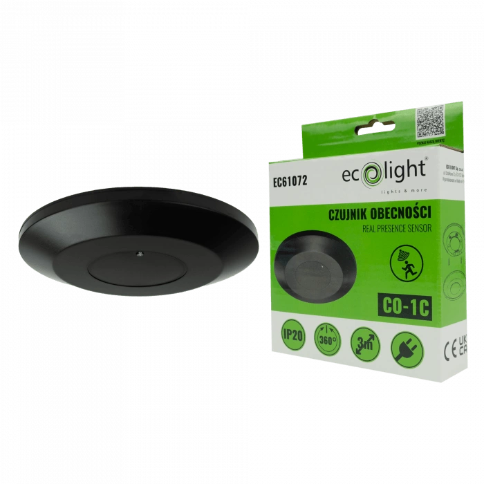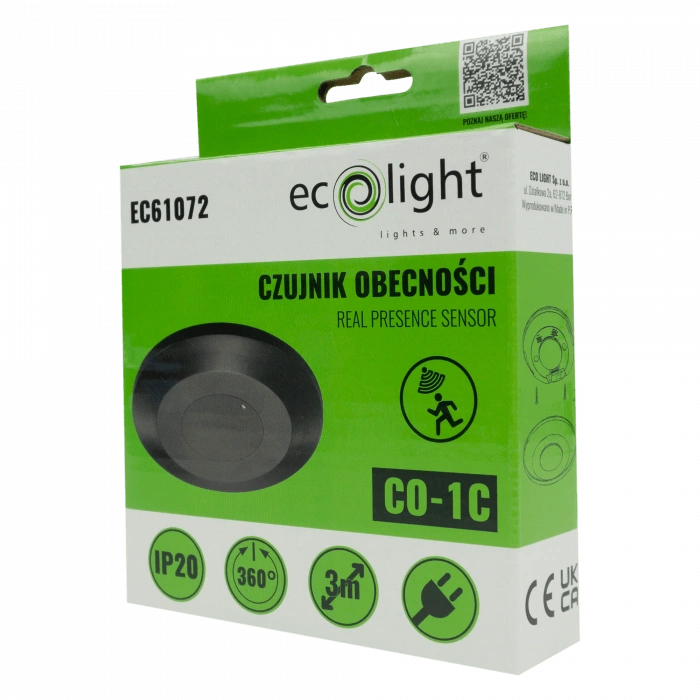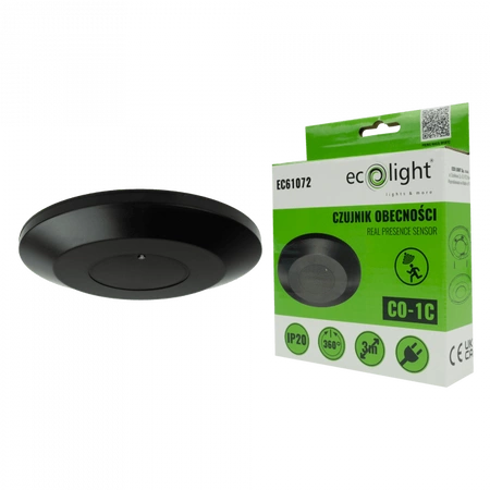 Odkryj nowoczesne rozwiązanie dla Twojego inteligentnego domu - czujnik ruchu i zmierzchu Czujnik Obecności PIR CO-1C od Ecolight. Ten elegancki, czarny czujnik to idealne połączenie funkcjonalności i stylu, zapewniając skuteczne pokrycie 360° i zasięg detekcji do 3 metrów. Wykorzystując technologię pasywnego czujnika podczerwieni (PIR), doskonale sprawdzi się w biurach, mieszkalnych przestrzeniach oraz wszelkich miejscach wymagających automatyzacji oświetlenia.