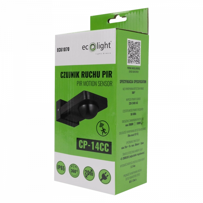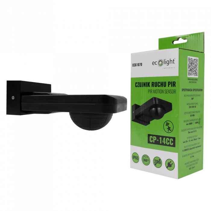 Czujnik Ruchu i Zmierzchu PIR IP44 Natynkowy Czarny 20m 360° CP Ecolight