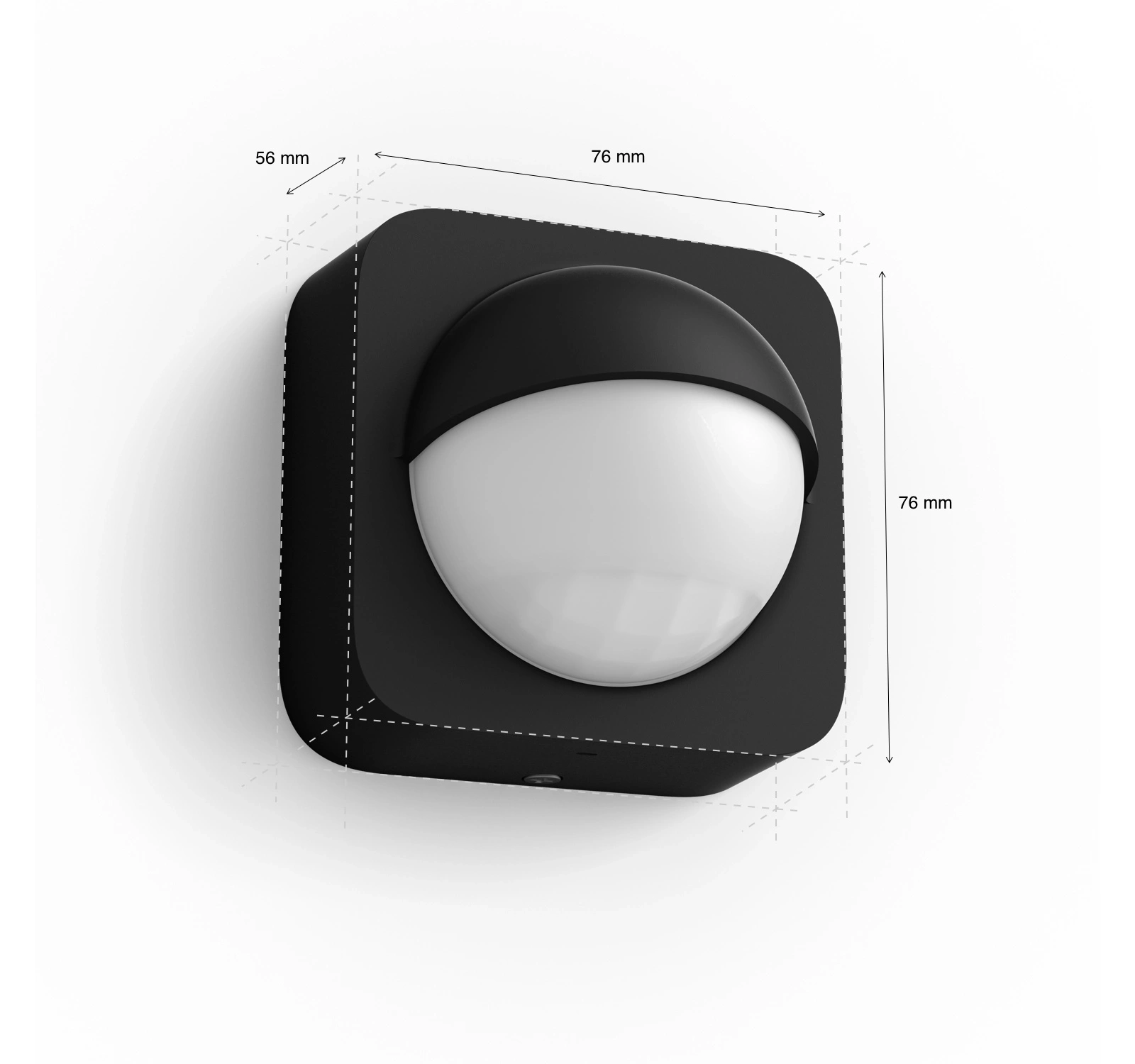 Bezprzewodowy Outdoor Motion Sensor aktywuje Twoje lampy Hue, gdy wykryje ruch – na zewnątrz lub wewnątrz domu. Dzięki zasilaniu na baterie i montażowi w kilka minut (magnetyczny uchwyt + śruby), ustawisz go gdzie potrzebujesz – przy drzwiach, na tarasie, przy ścianie czy słupie. Czujnik zawiera też czujnik zmierzchu – oświetlenie włączy się tylko wtedy, gdy będzie faktycznie ciemno. (Wymaga Hue Bridge do pełnej funkcjonalności)