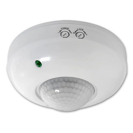 Czujnik ruchu PIR sufitowy natynkowy to świetny sposób na automatyzację sterownia oświetleniem LED w pomieszczeniu. Jeden z najpopularniejszych rodzai czujnika wśród dostępnych na rynku. Cechuje się prostym i dyskretnym montażem bezpośrednio na sufity czy ściany. Czujnik wykrywa ciepło ludzkiego ciała, i jeżeli znajdzie się ono w zasięgu widzialności czujnika, urządzenie zadziała. Dzięki ustawieniu za pomocą potencjometrów możemy regulować czas świecenia, a także wybrać tryb pracy dzień/noc.