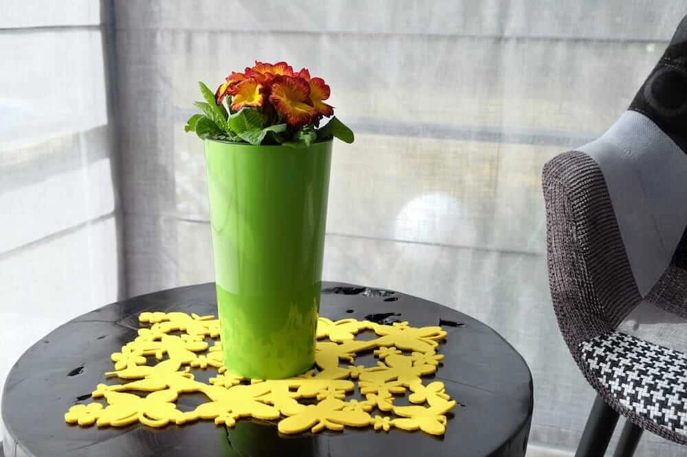 Doniczka wykonana została z PP (polipropylen), materiału, który w 100 % podlega recyklingowi. Jest przy tym lekki, nietłukący i łatwy w utrzymaniu w czystości.