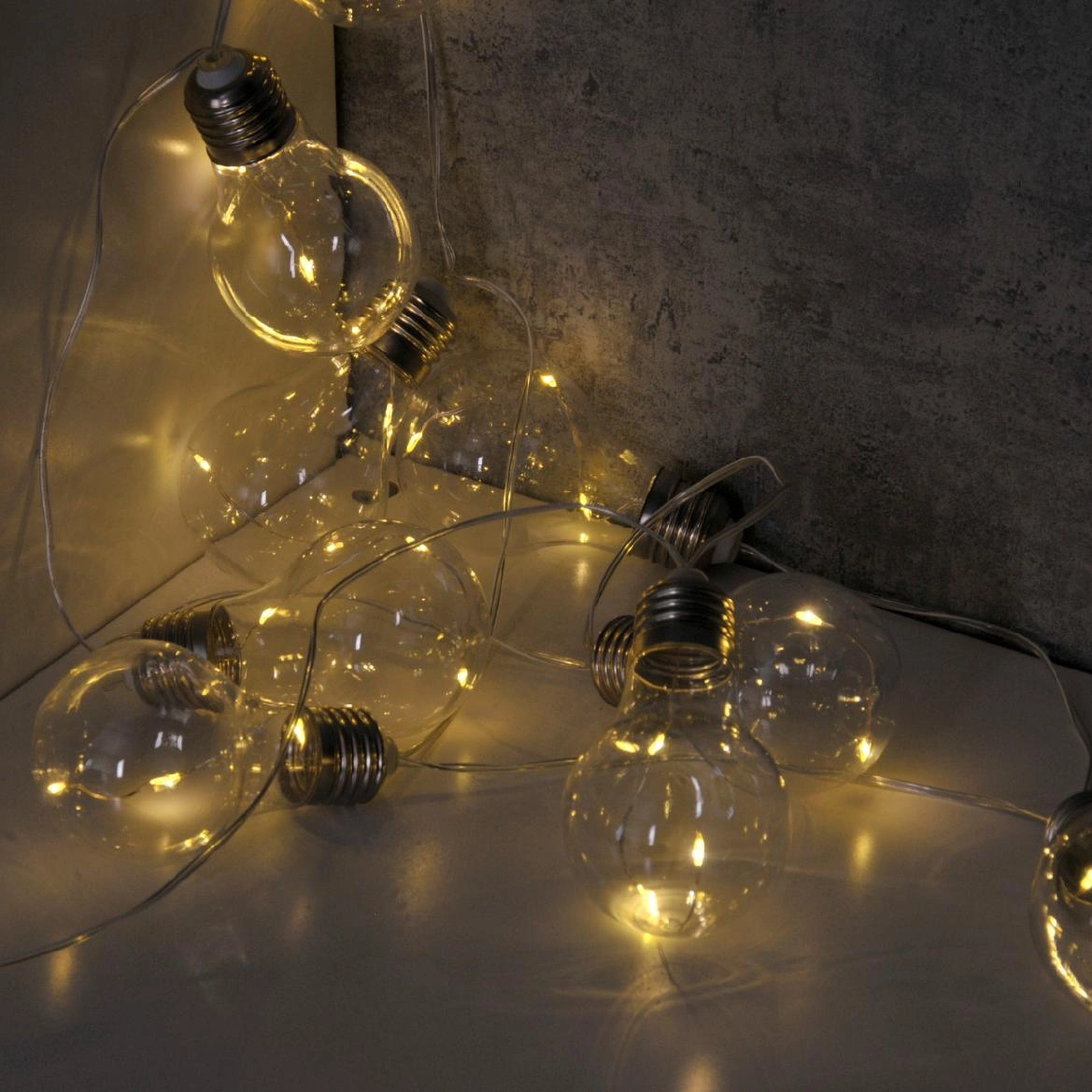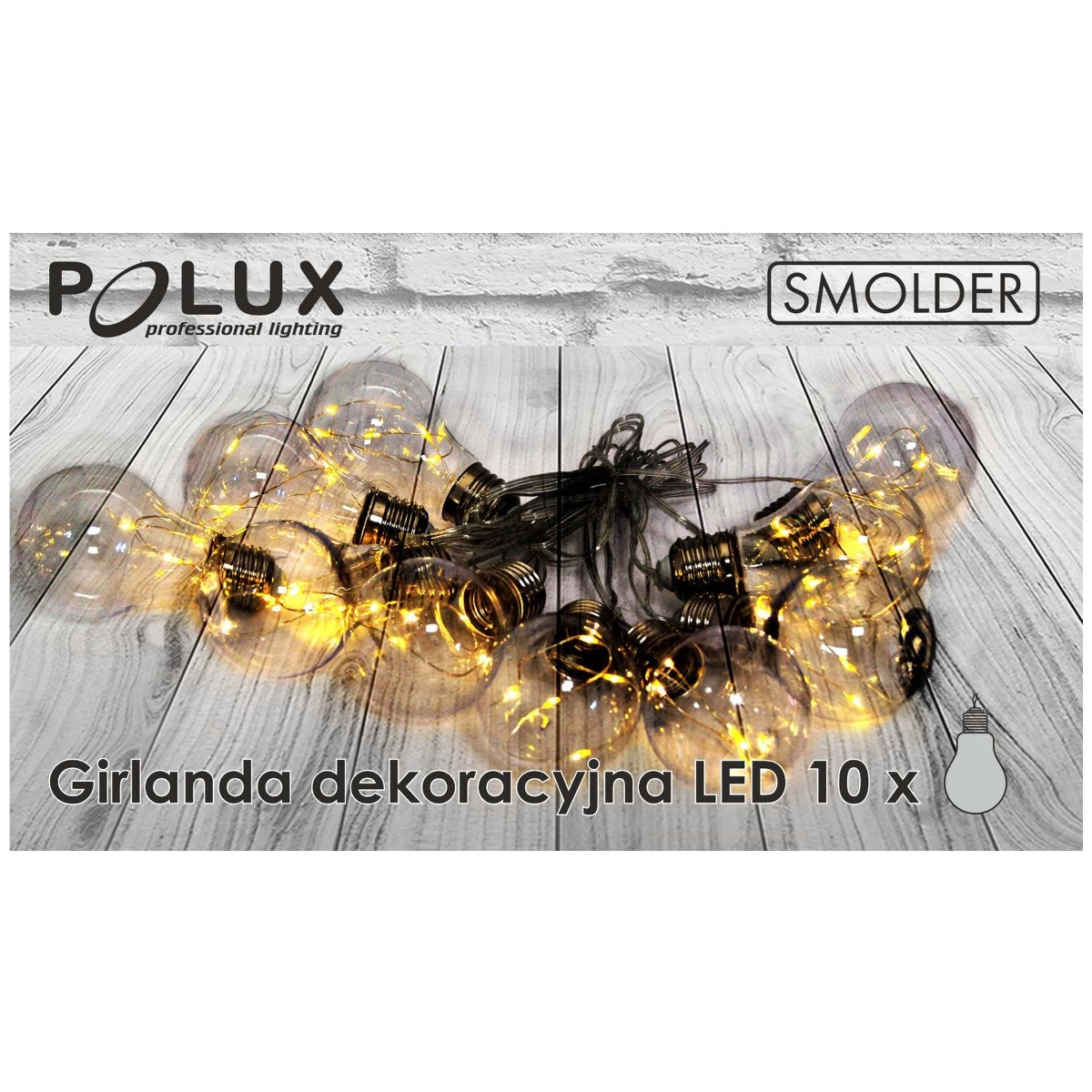 GIRLANDA ogrodowa LED SMOLDER na baterie 2 x AA z 10cioma zintegrowanymi źródłami światła w kształcie tradycyjnych żarówek przez co będzie się pięknie prezentować w Twoim ogrodzie. Dzięki niezwykłej grze świateł i cieni podkreślisz atmosferę ogrodu oraz wniesiesz do otoczenia domu niepowtarzalny klimat.