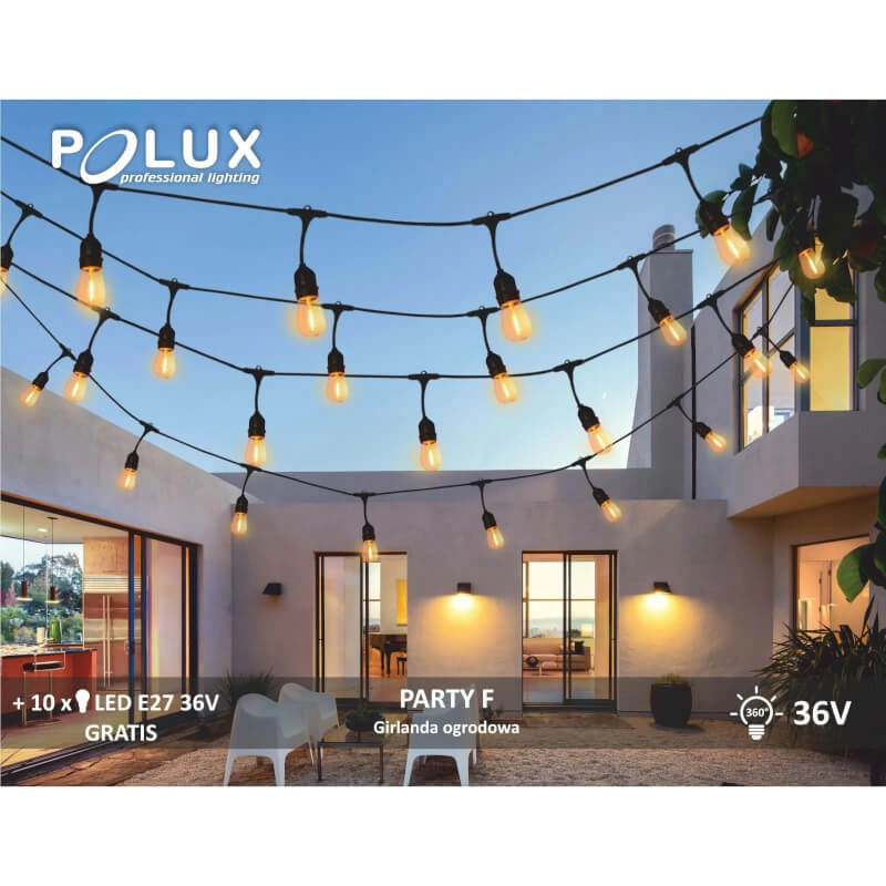 GIRLANDA OGRODOWA ozdobna 5,6m 10xE27 Filament 6W GOLDLUX (Polux)