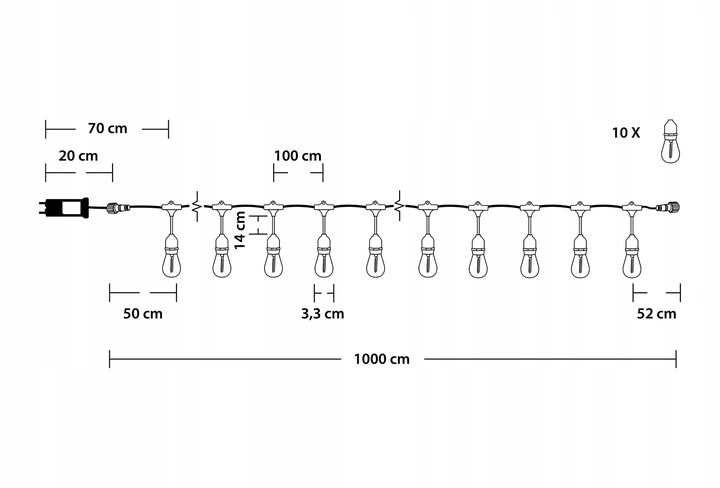 • Kompletny zestaw z żarówkami – w komplecie otrzymujesz 10 żarówek LED 1,3W 2200K, które od razu zapewniają ciepłe i nastrojowe światło.
