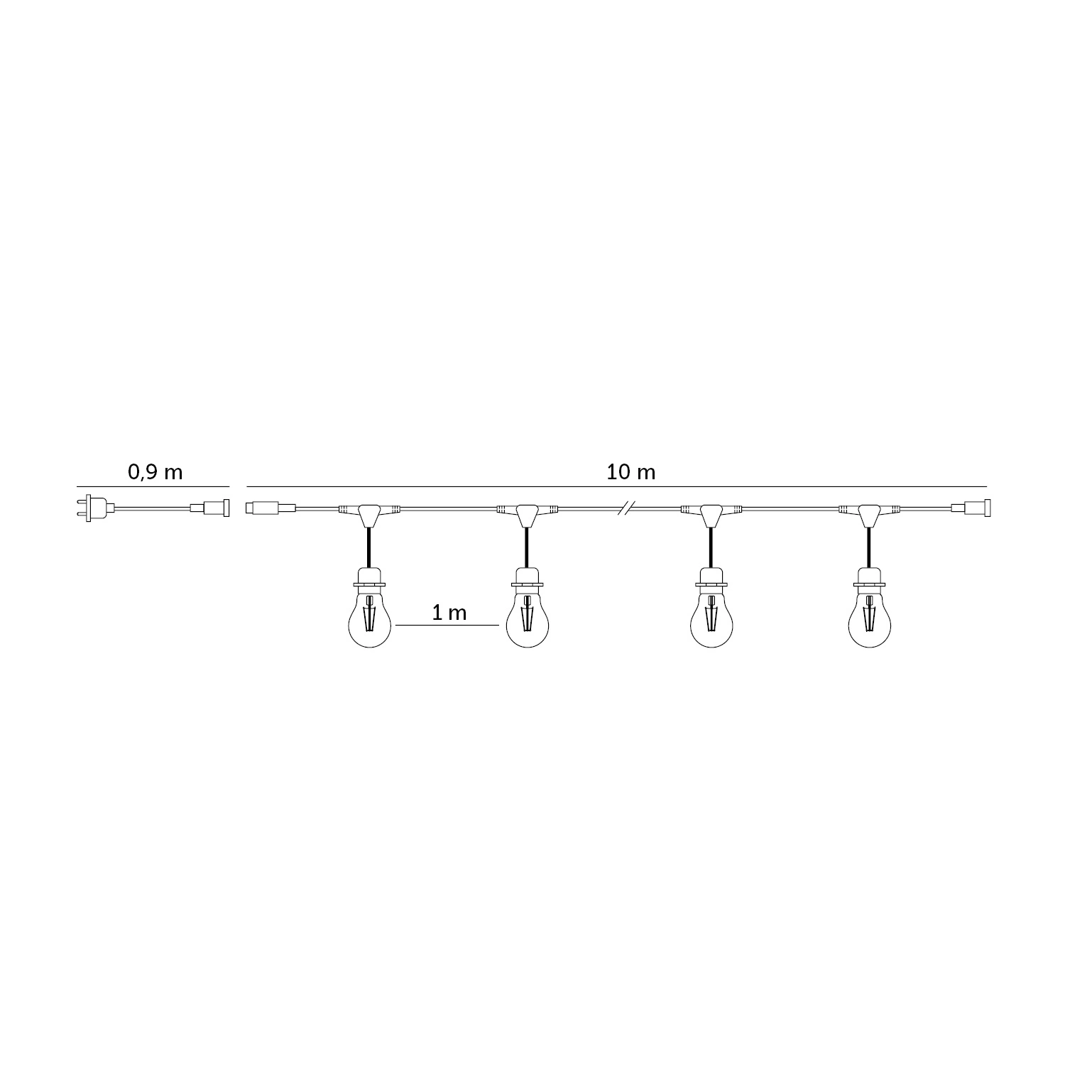 Girlanda Ogrodowa Zewnętrzna Łańcuch Świetlny 10W 500lm 2700K Ciepła 10x E27 Czarna IP44 10m Mimosa Kobi