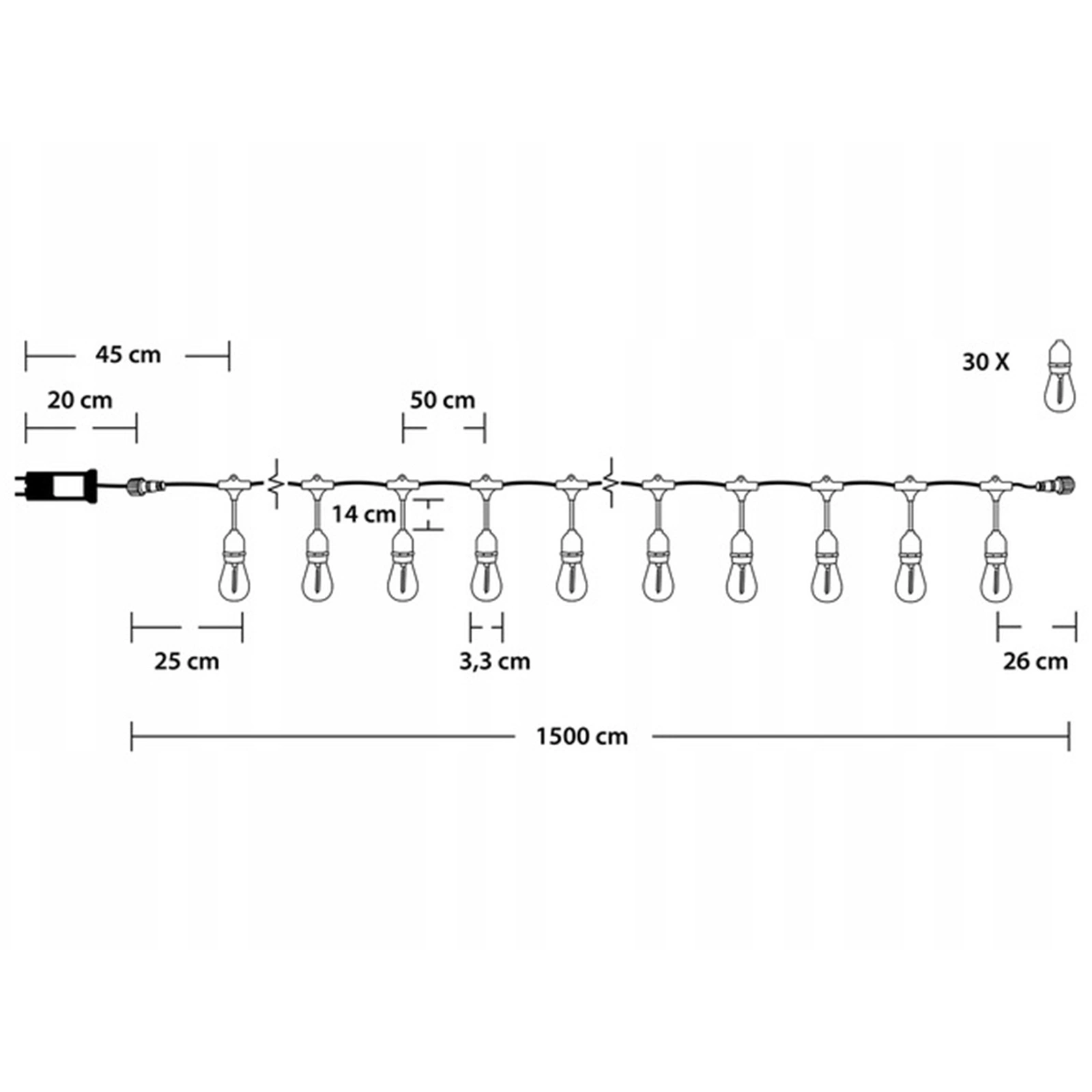 LUMILED MALUS to dekoracyjna girlanda ogrodowa o długości 15 metrów, wyposażona w 30 gniazd E27 oraz komplet 30 żarówek LED 1,3W 2200K. Dzięki gotowemu zestawowi od razu stworzysz wyjątkową atmosferę w ogrodzie, na tarasie lub podczas spotkań na świeżym powietrzu. Dopasowane źródła światła gwarantują ciepłą, nastrojową barwę i równomierne oświetlenie, które sprawdzi się zarówno na co dzień, jak i podczas wyjątkowych okazji. To nie tylko praktyczne i kompletne rozwiązanie, ale również stylowa dekoracja, która odmienia każdą przestrzeń.