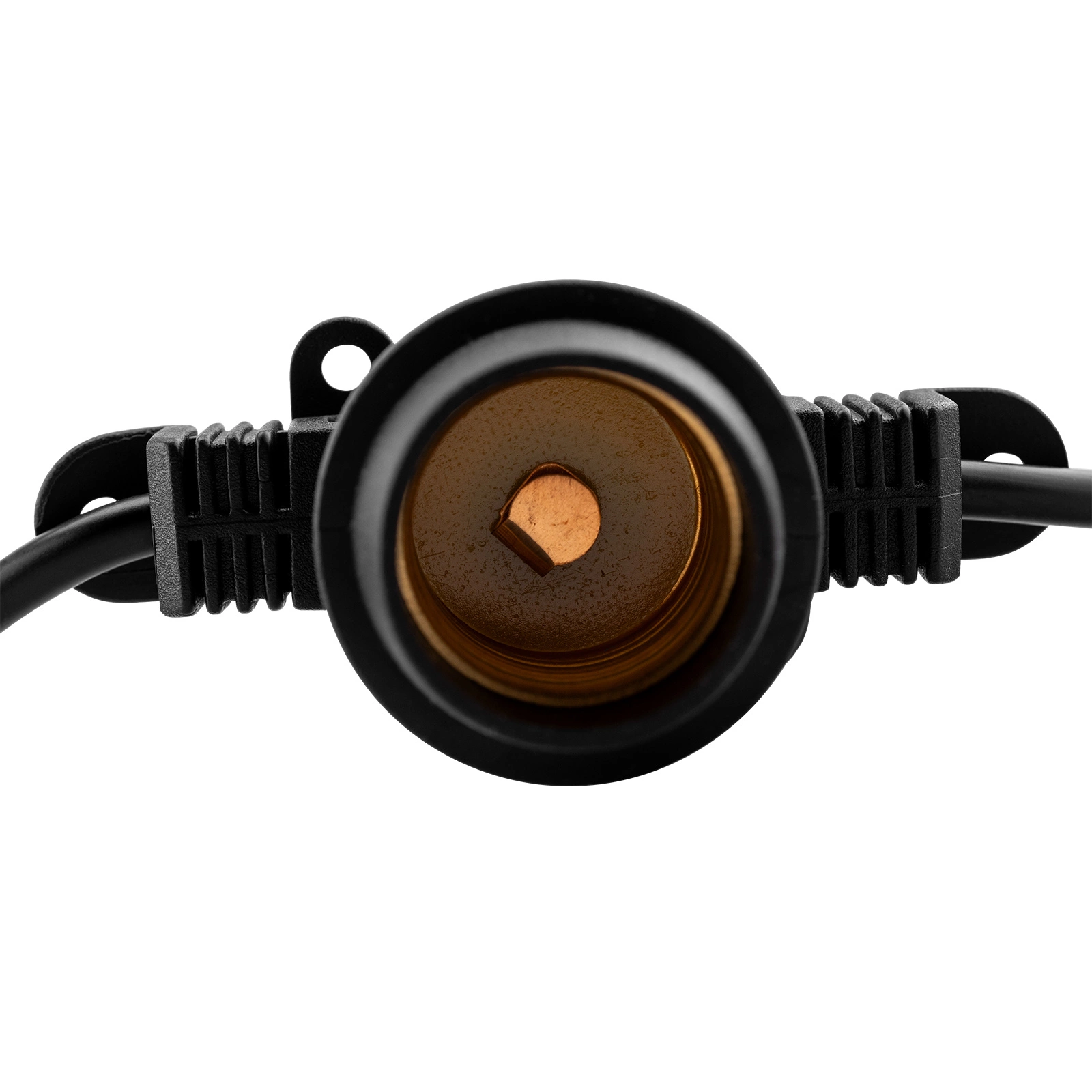 Girlanda LUMILED NARCI wyposażona jest w uniwersalne gniazda E27, które umożliwiają zastosowanie dowolnych żarówek LED – od ciepłych i nastrojowych po dekoracyjne lub kolorowe. Wymiana źródeł światła jest szybka i prosta, dzięki czemu możesz w każdej chwili dopasować nastrój do okazji. To idealne rozwiązanie, gdy chcesz tworzyć wyjątkowy klimat –od przytulnego ciepła po efektowną iluminację imprezową.