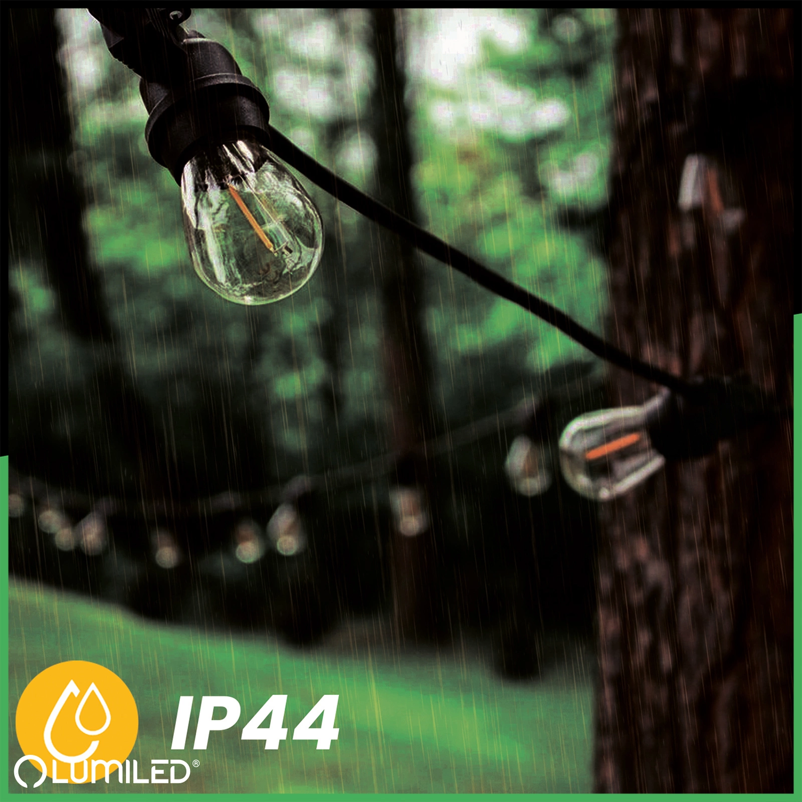 Girlanda LUMILED NARCI została zaprojektowana z myślą o długotrwałym i bezpiecznym użytkowaniu na zewnątrz. Gruby przewód z miedzianym rdzeniem zapewnia stabilne zasilanie i odporność na uszkodzenia, a wodoszczelność w klasie IP44 chroni instalację przed deszczem i wilgocią. Dzięki temu możesz cieszyć się nastrojowym światłem podczas każdej pory roku – od letnich wieczorów po zimowe spotkania na tarasie.