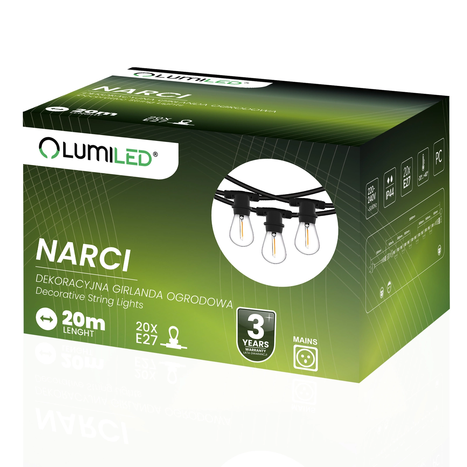 Girlanda Ogrodowa Zewnętrzna Łańcuch Świetlny 20m 20xE27 NARCI LUMILED - główne zdjęcie produktu