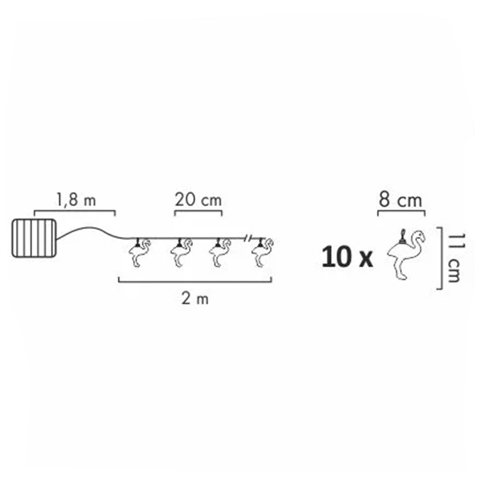 Girlanda solarna w kształcie flamingów została zaprojektowana z myślą, by tworzyć przytulną atmosferę. Girlanda pięknie prezentuje się w ogrodzie, może również stanowić główne źródło światła naszej altany. Zastosowanie panelu solarnego w lampie sprawia, że lampę możemy zamontować w każdym nasłonecznionym miejscu budynku, bez konieczności montowania instalacji elektrycznej.