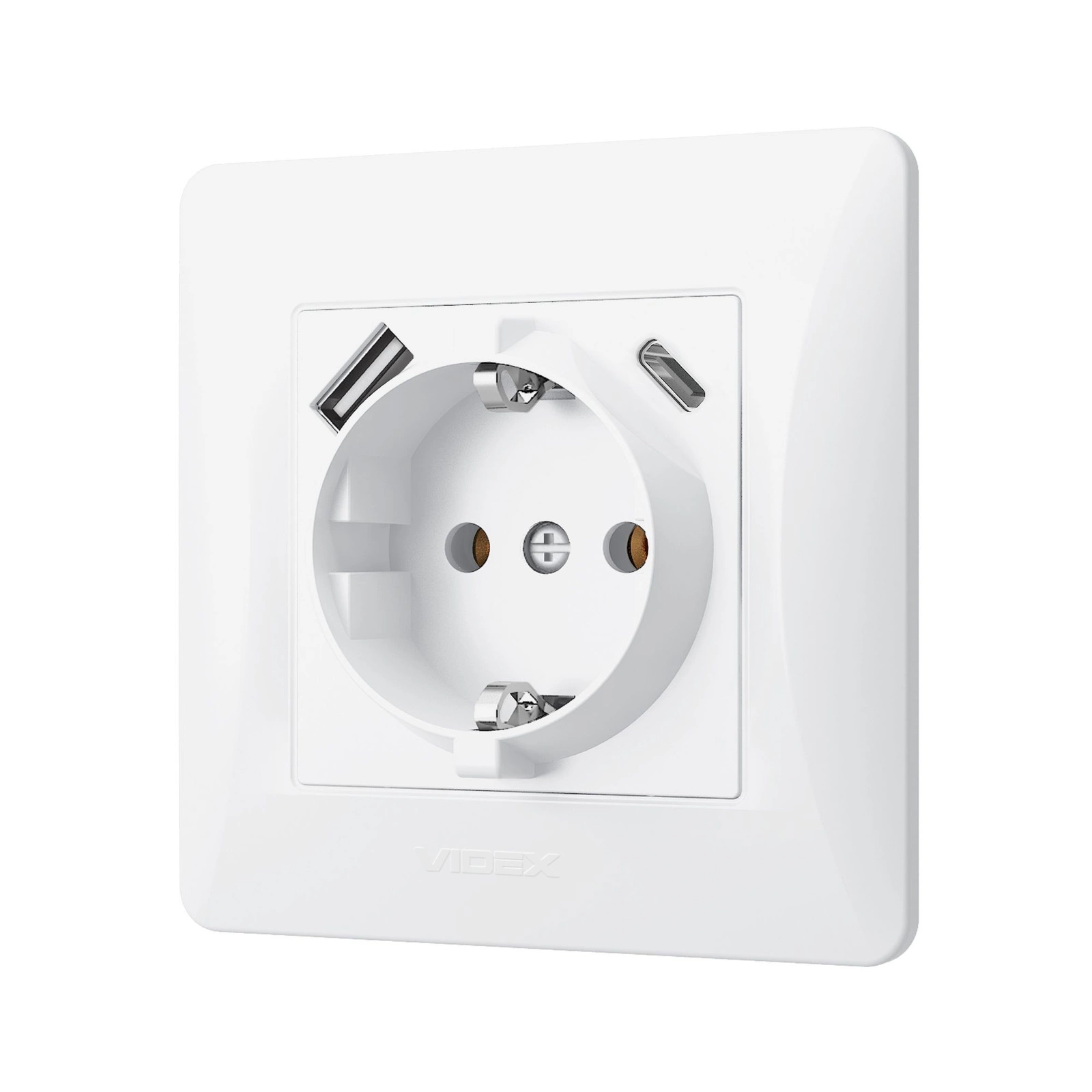 - Nowoczesne połączenie funkcjonalności i stylu – gniazdko pojedyncze z portami USB-A i USB-C marki BINERA VIDEX umożliwia łatwe ładowanie różnych urządzeń.
