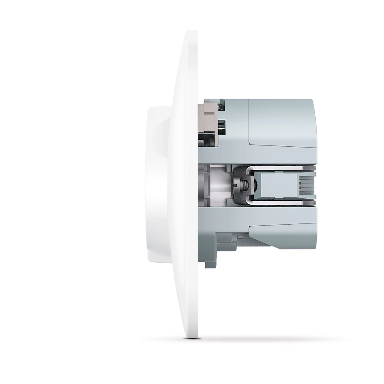 - Uniwersalny design – biały kolor gniazdka pasuje do większości wnętrz, zarówno domowych, jak i biurowych.