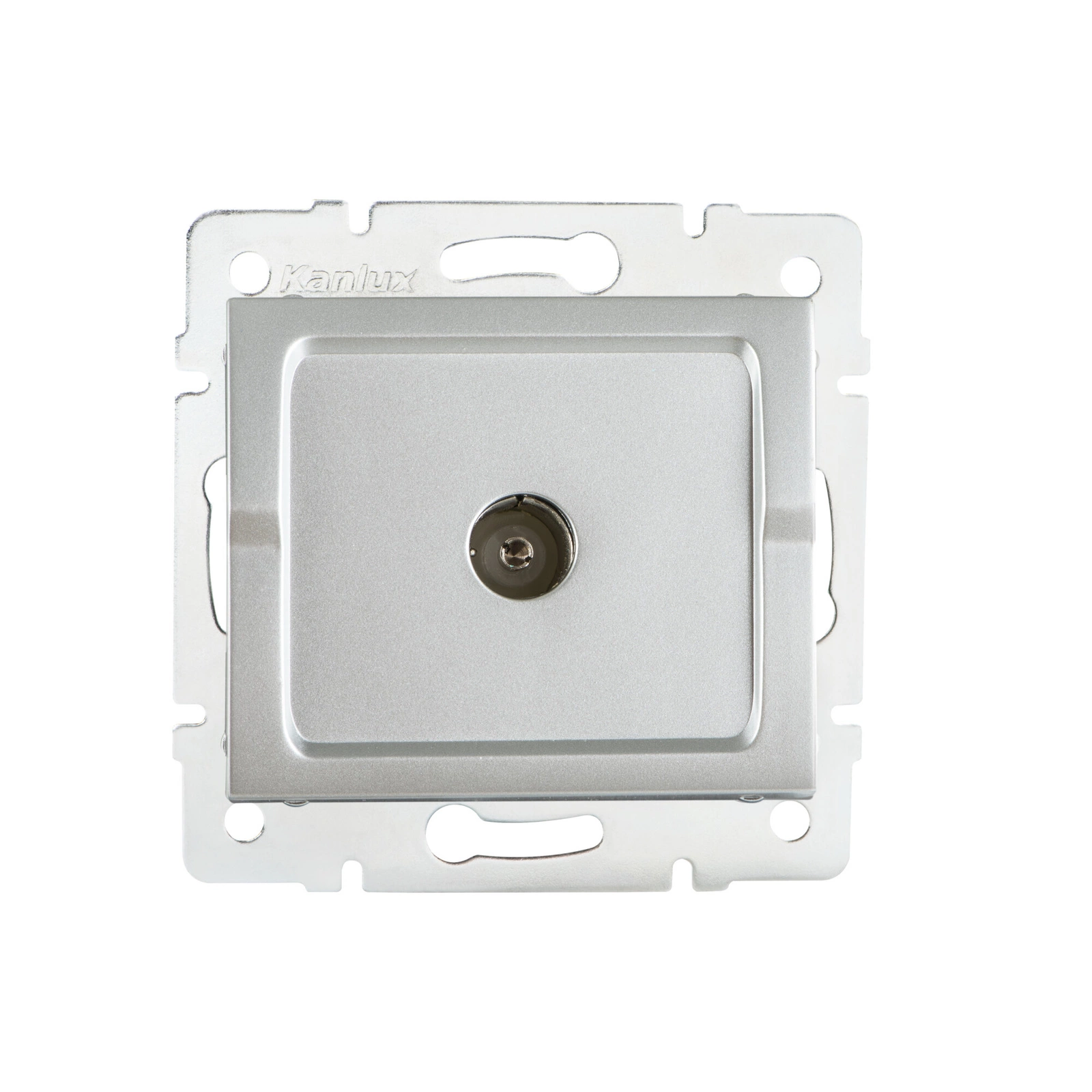 Gniazdo Antenowe Koncentryczne TV Przelotowe Kwadratowe Srebrne LOGI Kanlux
