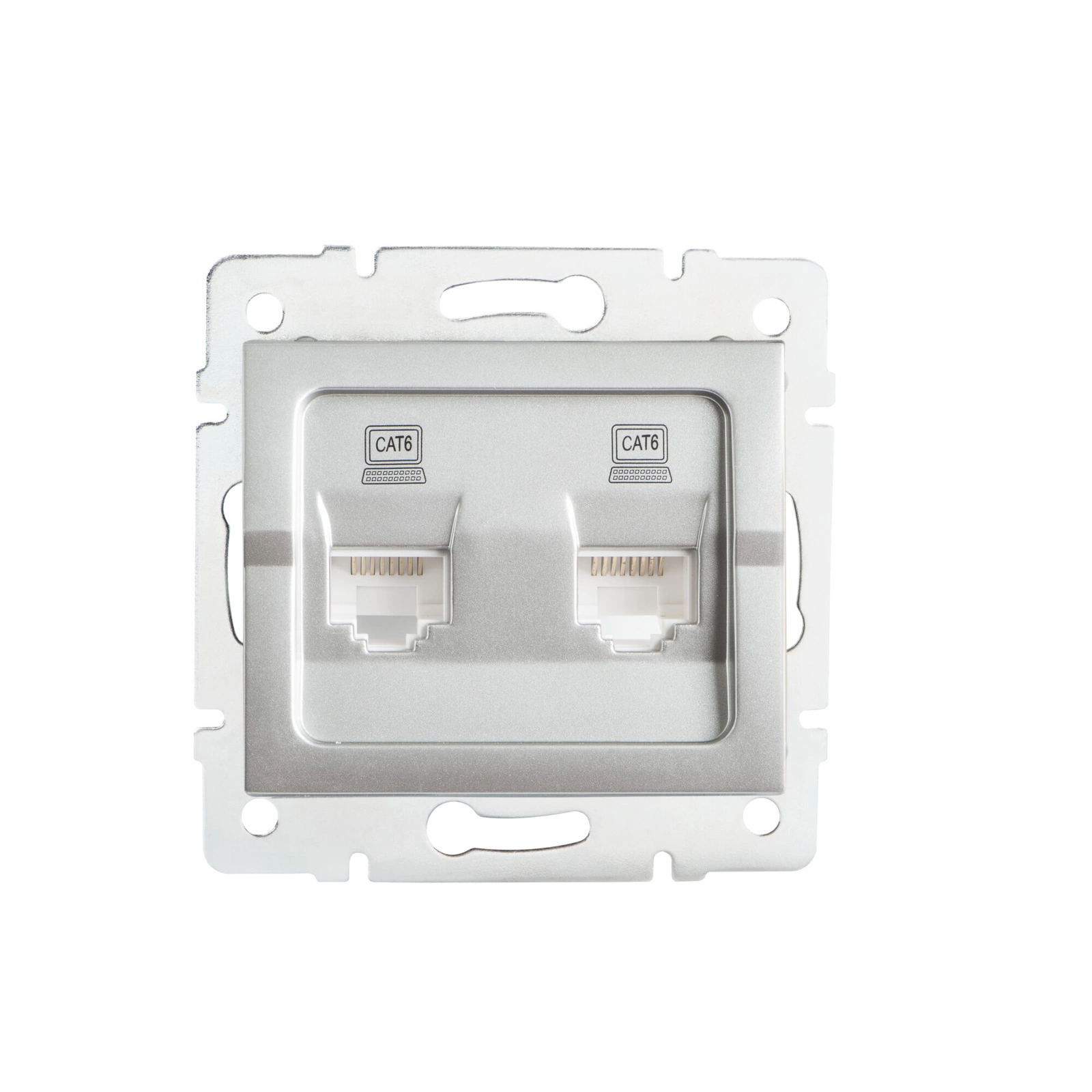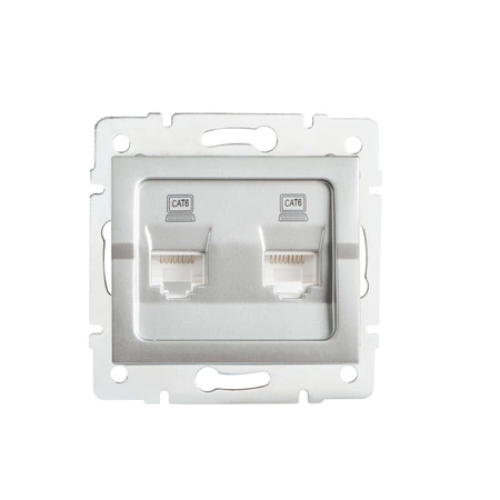 Gniazdo Komputerowe Podwójne Niezależne 2x RJ45 Jack Kwadratowe Srebrne LOGI Kanlux