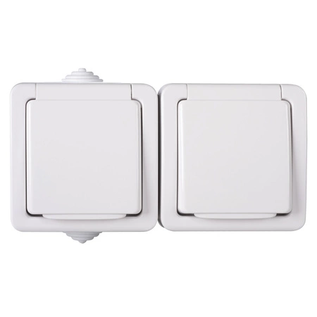 Gniazdo Sieciowe Zasilające Podwójne Ochrona Styków 16A Uziemienie IP54 Prostokątne Białe TEKNO Kanlux