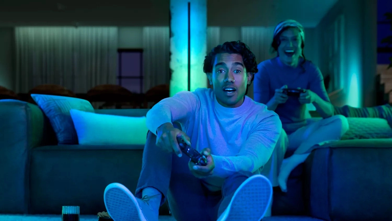 - Kino domowe: Zamień każdy seans filmowy w kinowe doświadczenie – gradientowe światło rozszerza obraz poza ekran.