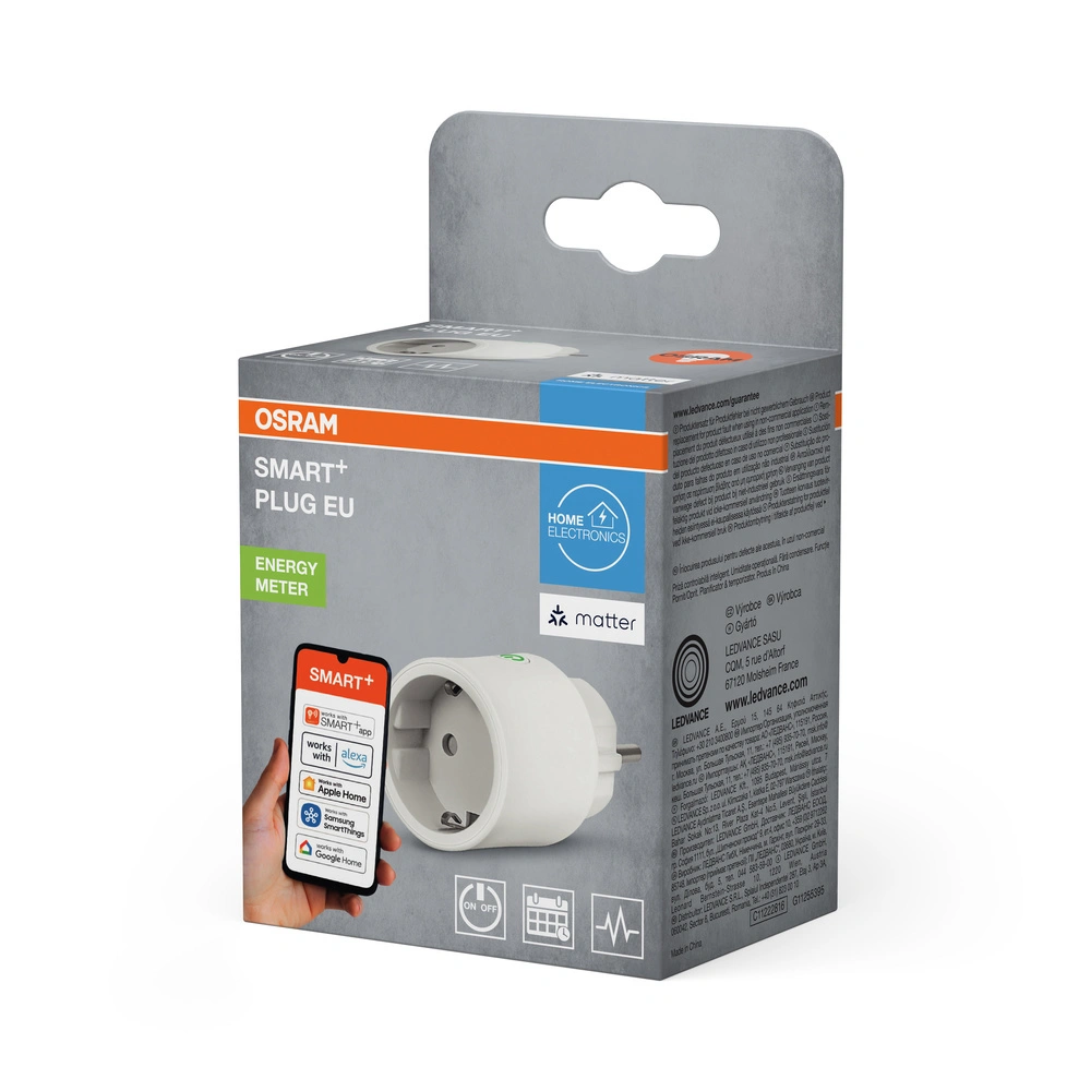 Odkryj przyszłość inteligentnego domu z białą wtyczką Osram SMART+ WiFi Matter! This zaawansowane urządzenie pozwala na zdalne sterowanie tradycyjnymi urządzeniami elektrycznymi za pomocą technologii Matter przez WiFi. Ciesz się nieskończonymi możliwościami dzięki maksymalnemu obciążeniu aż do 2300W i monitoruj zużycie energii dzięki wbudowanemu licznikowi energii. Kompatybilność z platformami Amazon Alexa, Google Home, Apple Home czy Samsung SmartThings sprawia, że integracja z istniejącym systemem inteligentnego domu jest szybka i prosta.