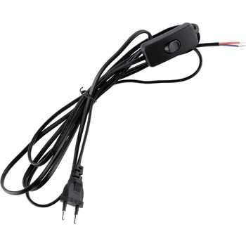 Sznur Przyłączeniowy Kabel 2,5m 2x0,5 z włącznikiem kołyskowym CZARNY