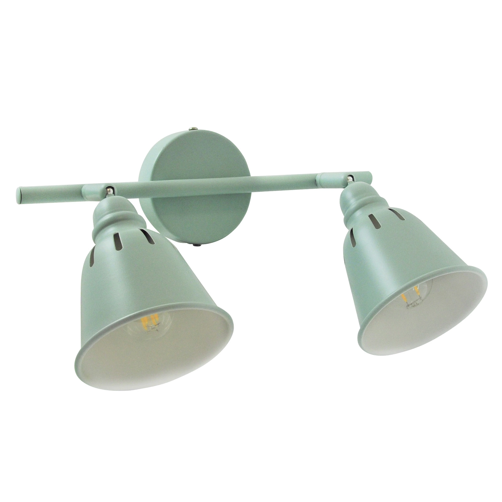 Podwójny KINKIET FIONA z wysokiej jakości materiałów w kolorze miętowym doskonale sprawdzi się do oświetlania ścian fasad budynku. Przystosowany do energooszczędnych źródeł światła z trzonkiem E14 (mały gwint) o maksymalnej mocy 8W. Żarówki LED można dokupić na pozostałych naszych aukcjach. Lampa wykonana została z stali proszkowanej i stanowi piękny dodatek do Twojego wnętrza. Oprawka zasilana jest typowym napięciem 230V.