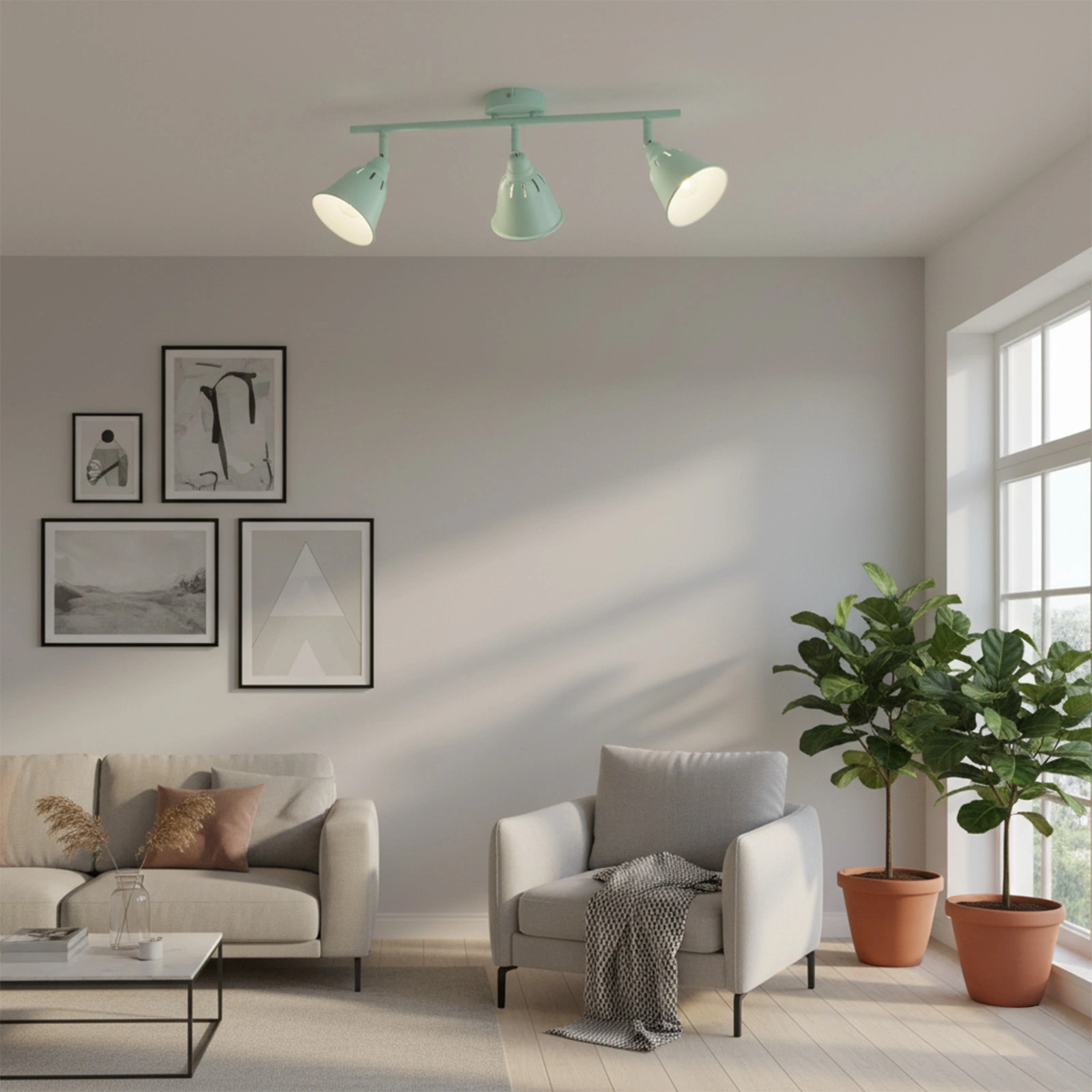 Potrójny KINKIET FIONA z wysokiej jakości materiałów w kolorze miętowym doskonale sprawdzi się do oświetlania ścian fasad budynku. Przystosowany do energooszczędnych źródeł światła z trzonkiem E14 (mały gwint) o maksymalnej mocy 8W. Żarówki LED można dokupić na pozostałych naszych aukcjach. Lampa wykonana została z stali proszkowanej i stanowi piękny dodatek do Twojego wnętrza. Oprawka zasilana jest typowym napięciem 230V.