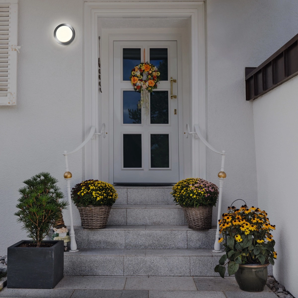 - Oświetlenie przestrzeni wokół wejść do obiektów, zwiększające bezpieczeństwo i funkcjonalność